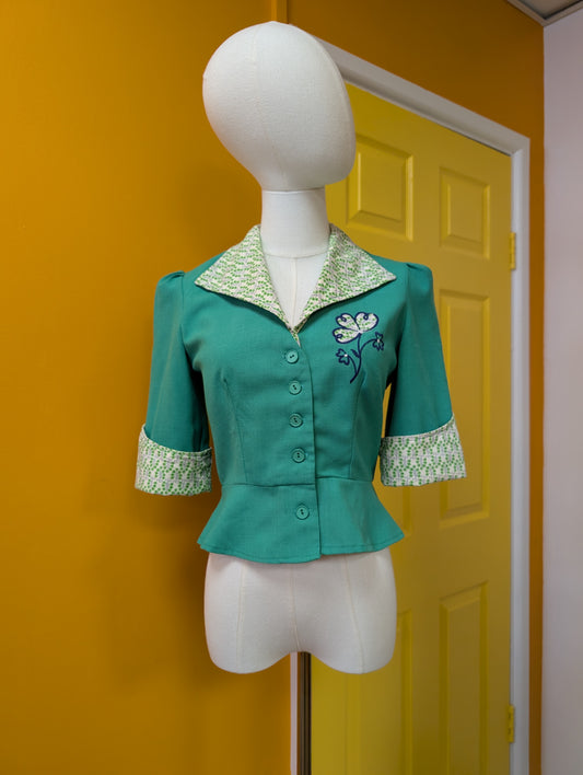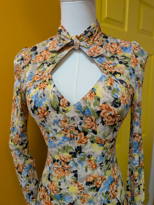 60s/70s Devonshire Lady green floral dress - S/8/10