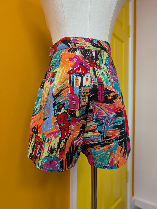 Gorgeous 1950s scenic novelty print cotton skirt - 26" waist
