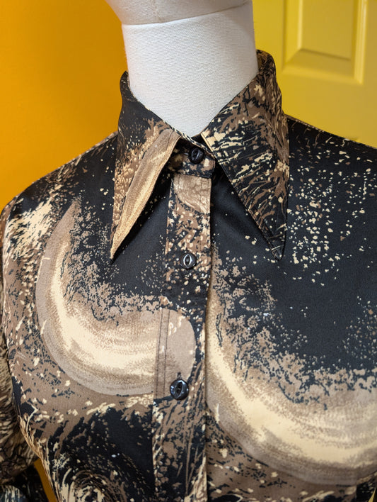 1970s St Michael crimplene dagger collar shirt - S