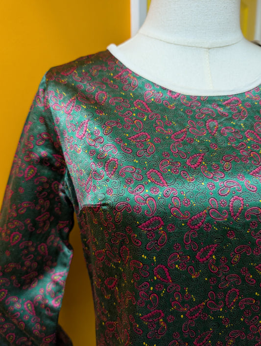 1960s green paisley mini dress - S/10