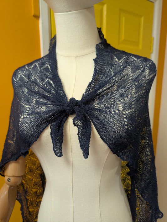 80s/90s Laura Ashley navy blue wool shawl/scarf