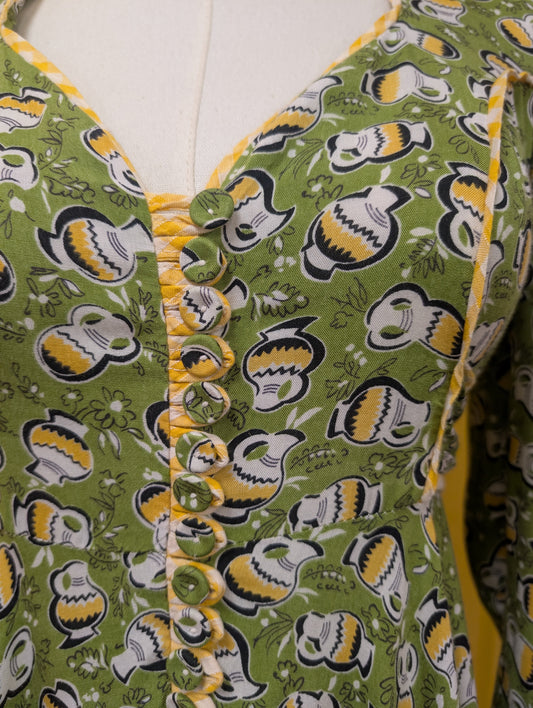 1970s Miss Mouse green & yellow novelty print dress - S/8