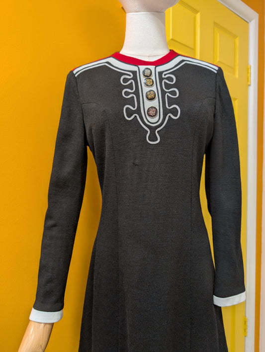 1970s black/red/white dress - S/10