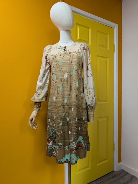 1970s Louis Caring autumnal novelty print dress - XS/S/6/8