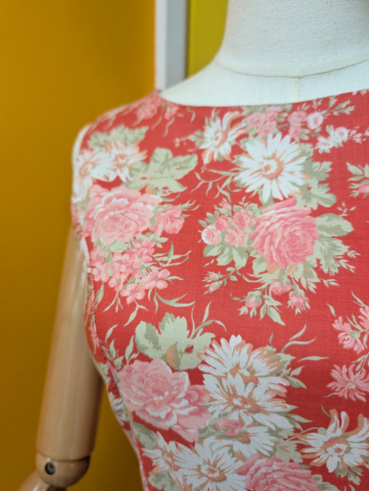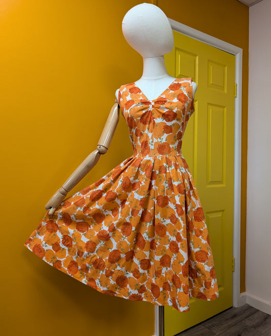 Late 1950s Modern Classics orange floral cotton dress - XS/S/6/8