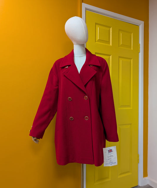 Deadstock 1980s David Barry red wool and cashmere coat - XL