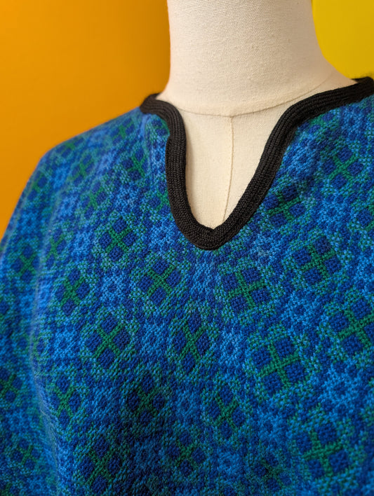 Reversible Welsh tapestry wool fringed poncho