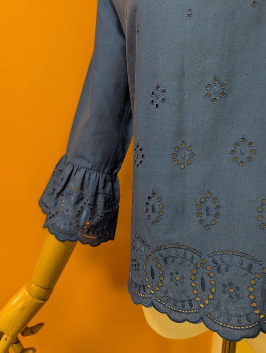 1960s Prova navy blue broderie anglaise blouse - M