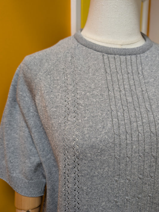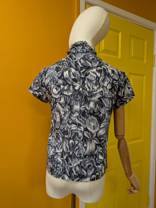 1960s grey abstract floral top - XS/S