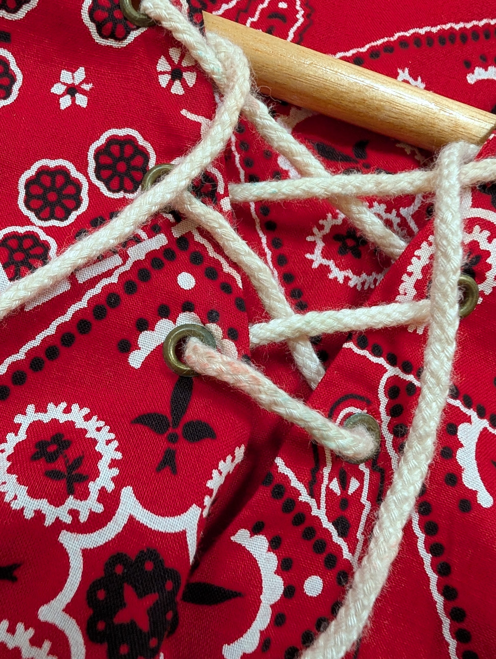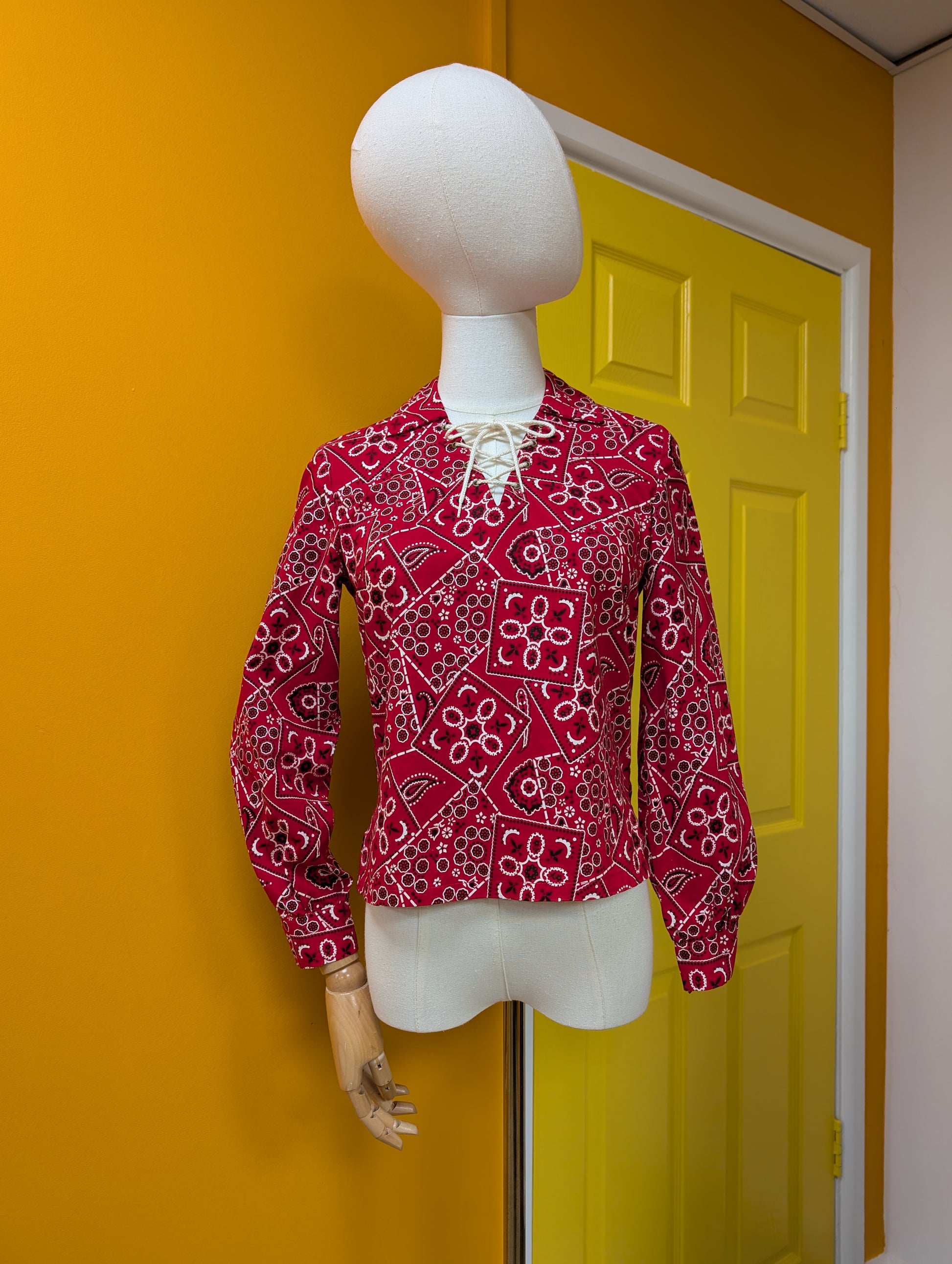 1950s Carol Brent red lace up bandana print top - XS
