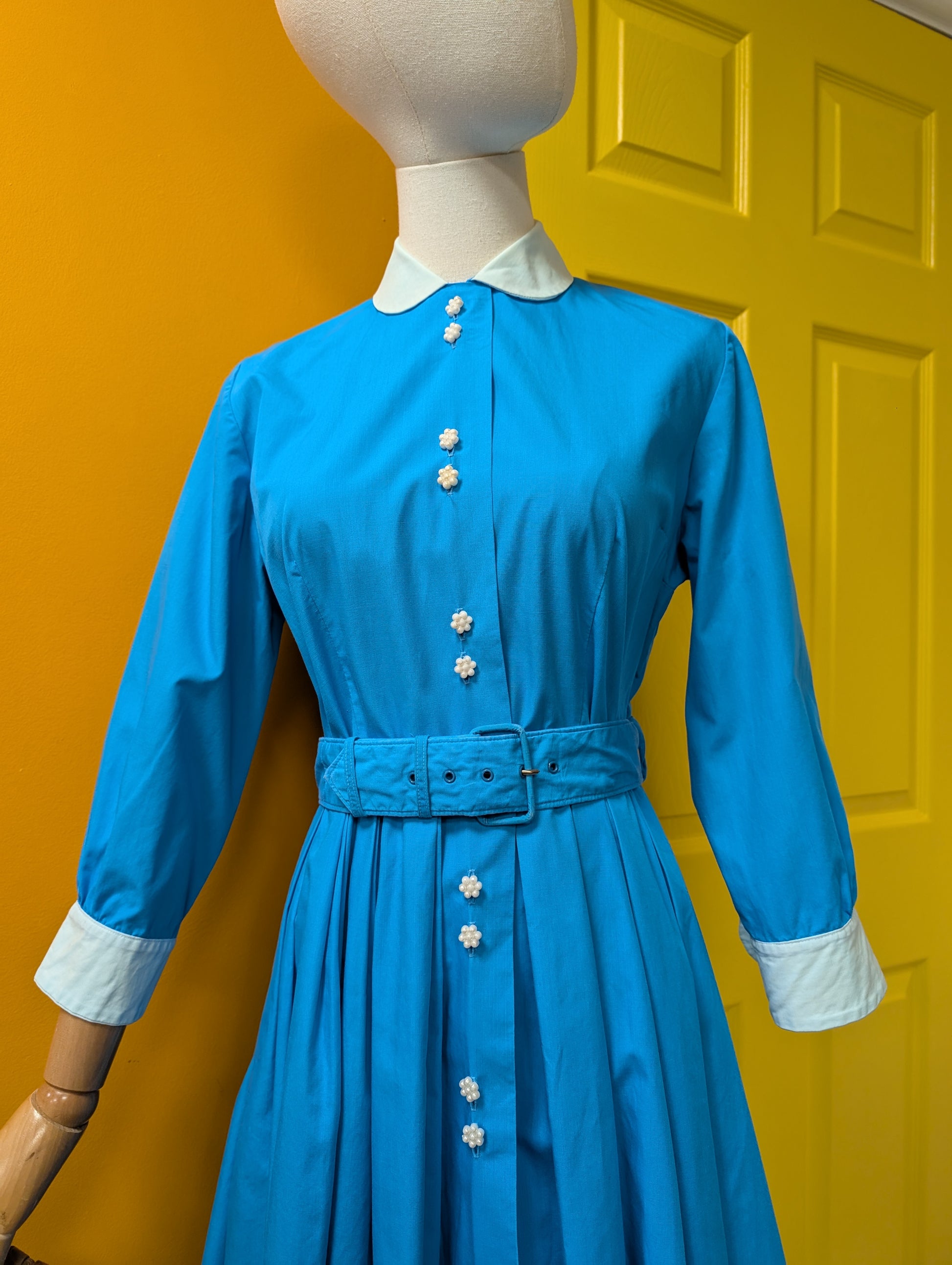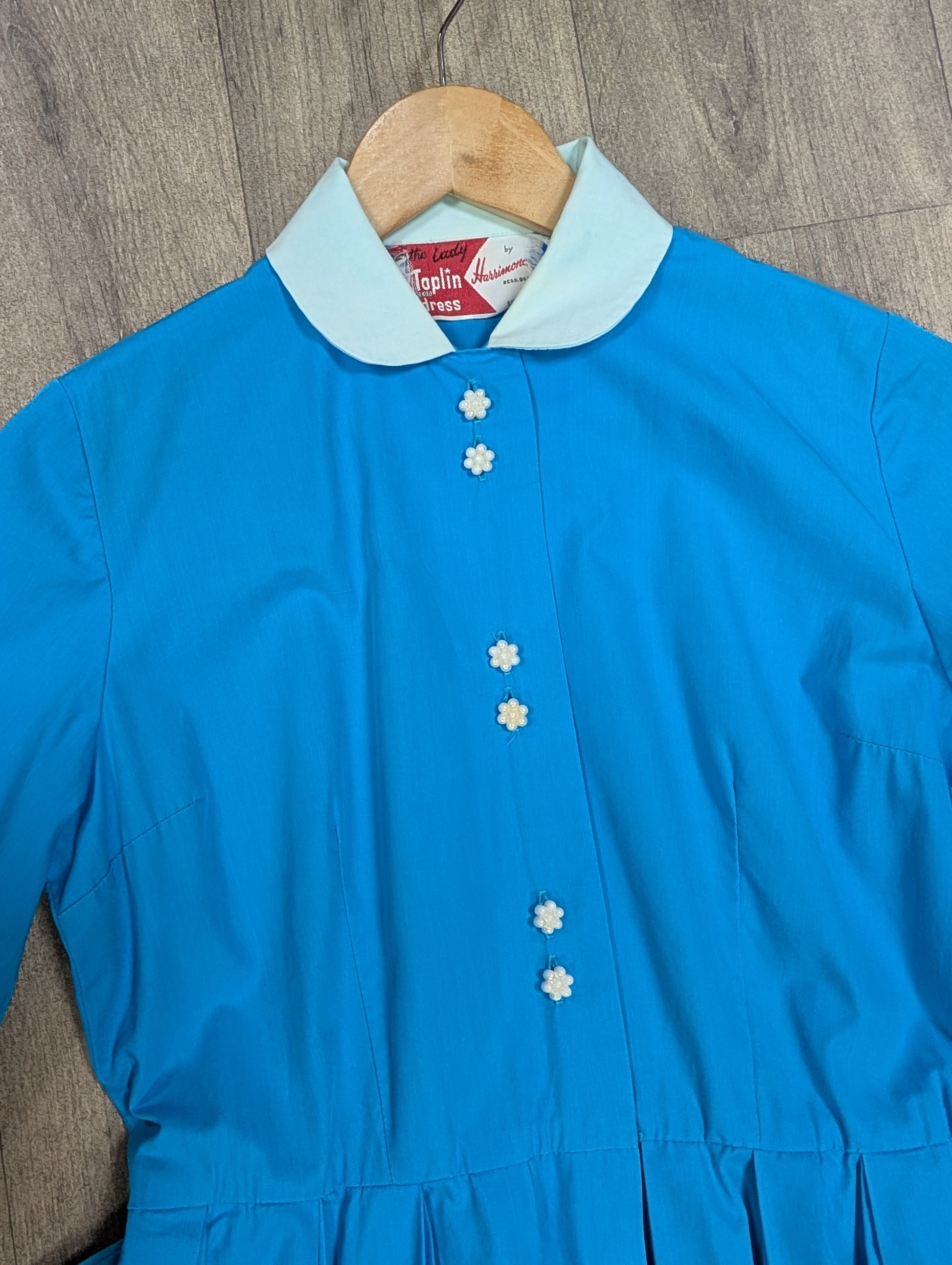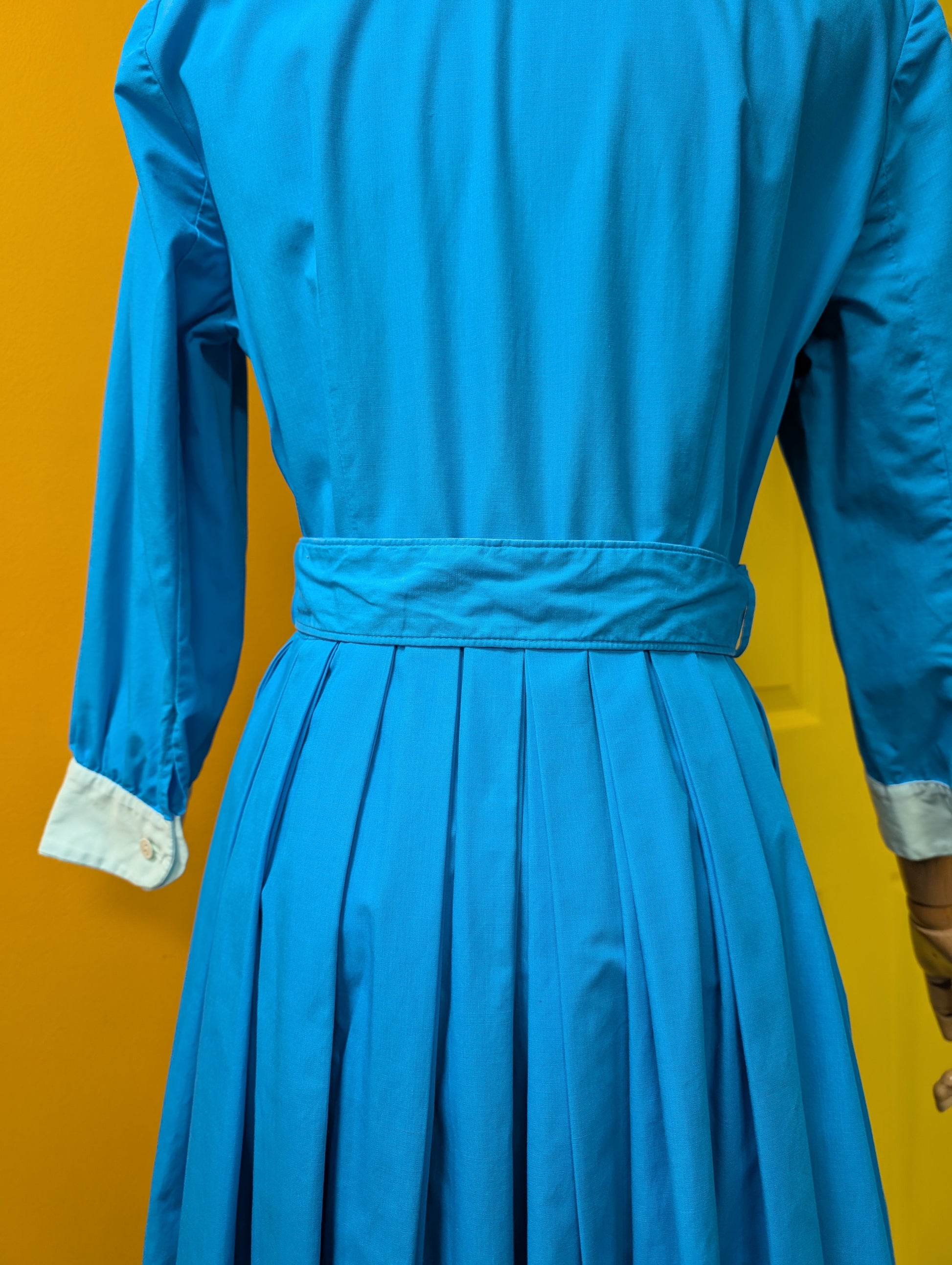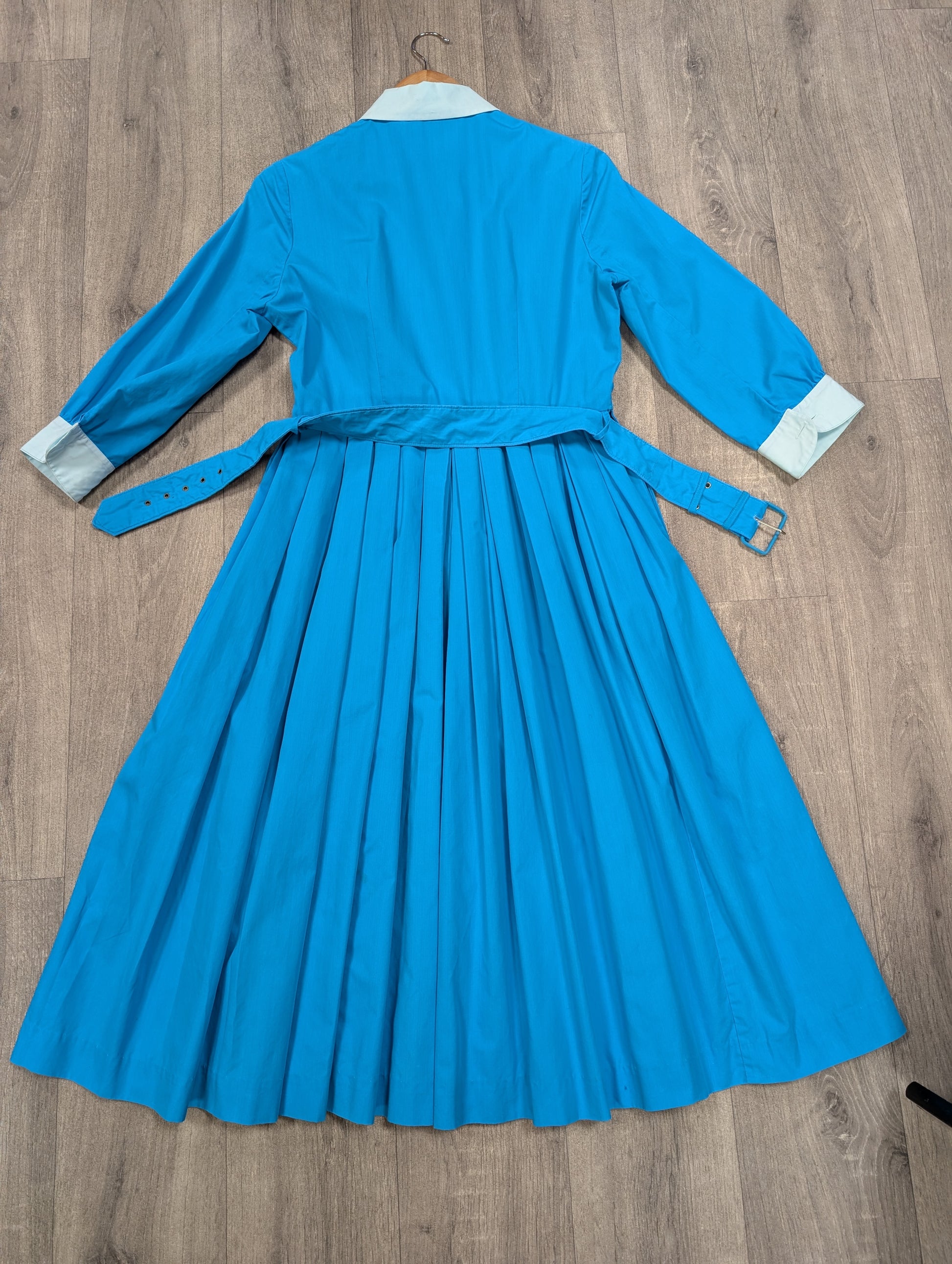 1950s The Lady by Harrimonde blue cotton dress and belt - 38"B, 29"W