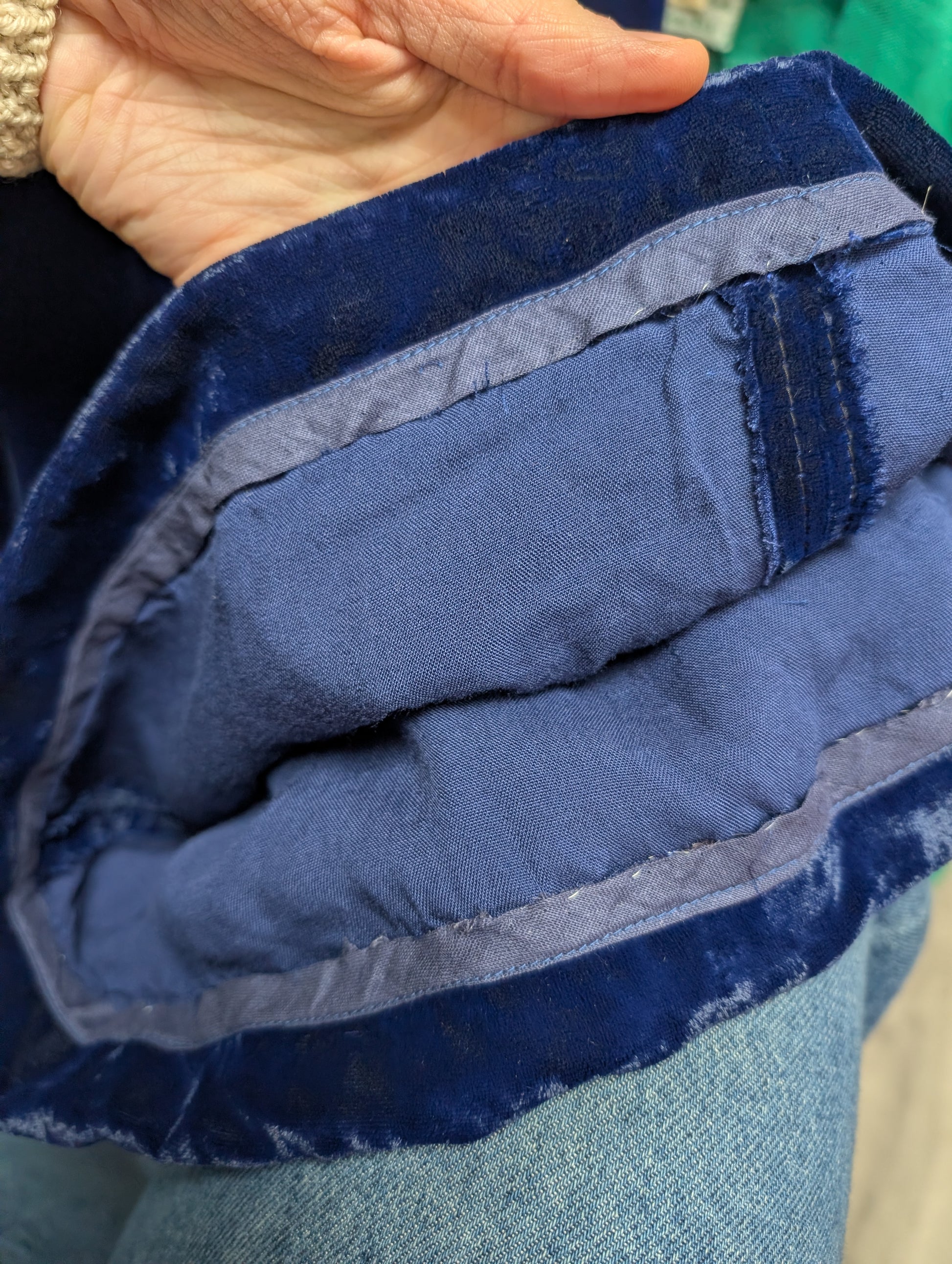 - A little wear and some streak lines to the velvet. Probably from steaming