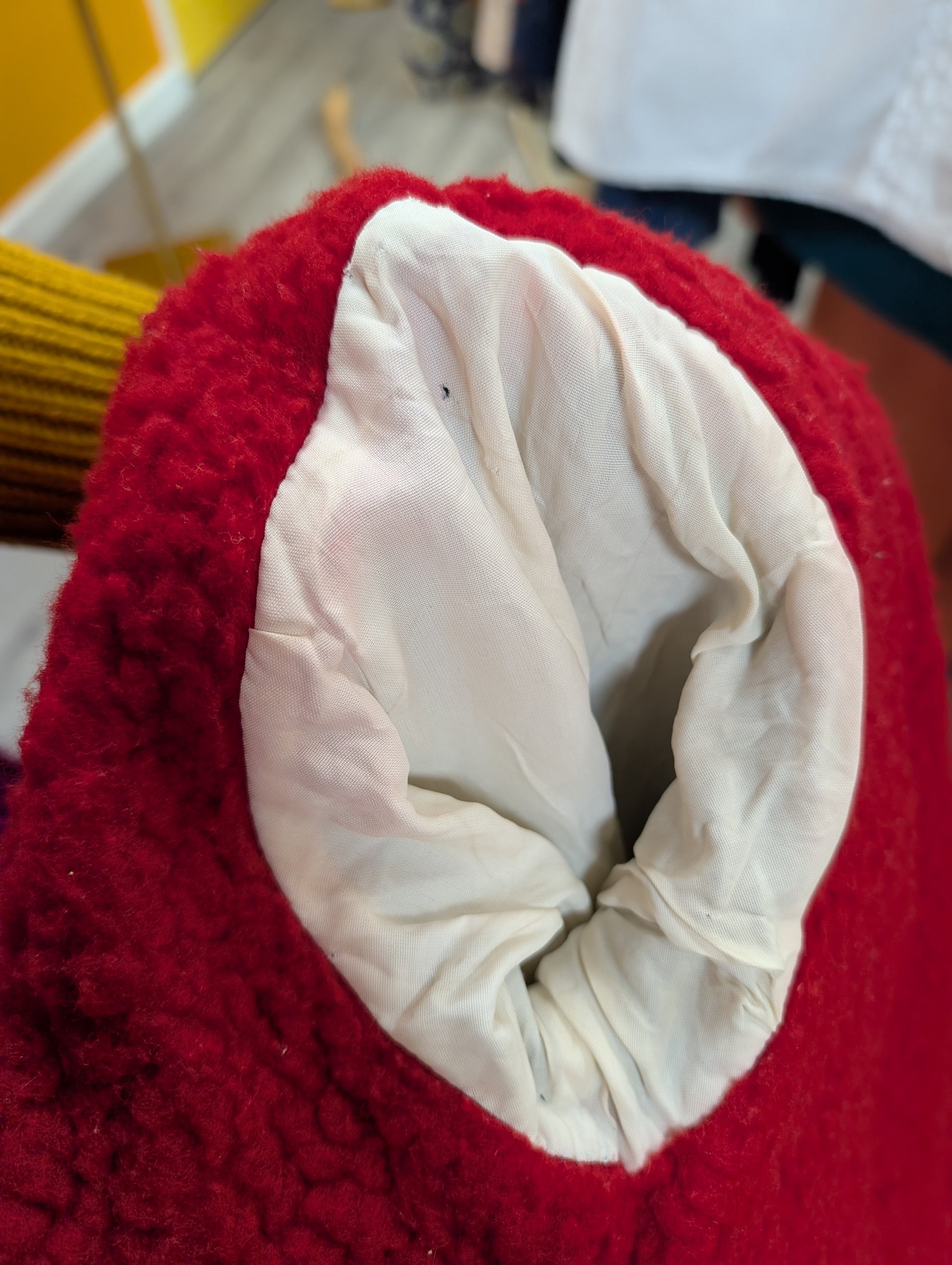 I would say this is best for a small due to the thick fleece lining of the body and the arms being on the thinner side. Seen on a size 6/8 mannequin