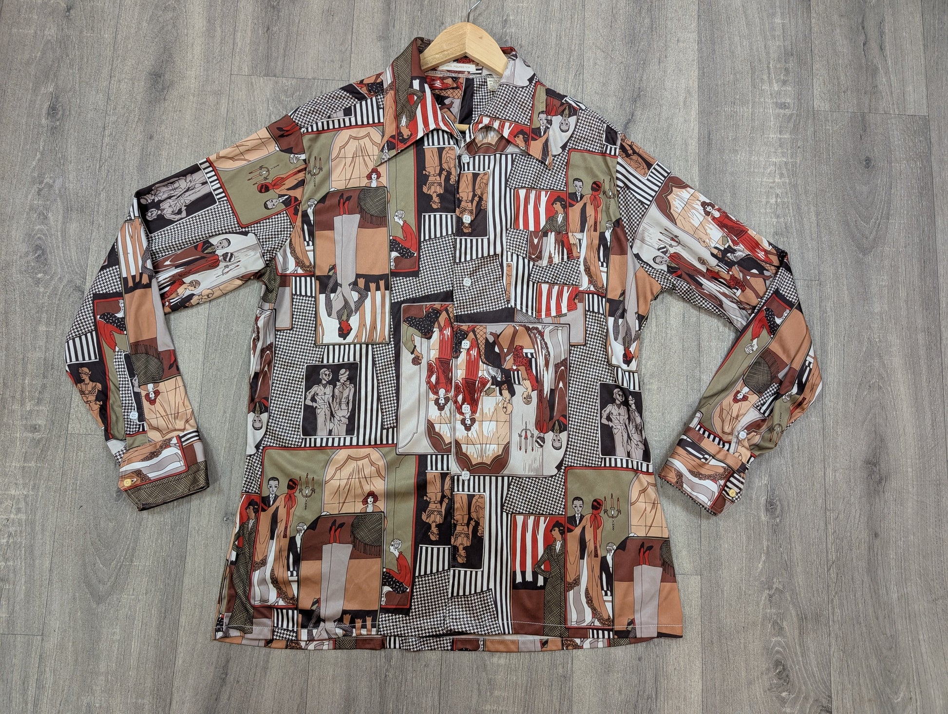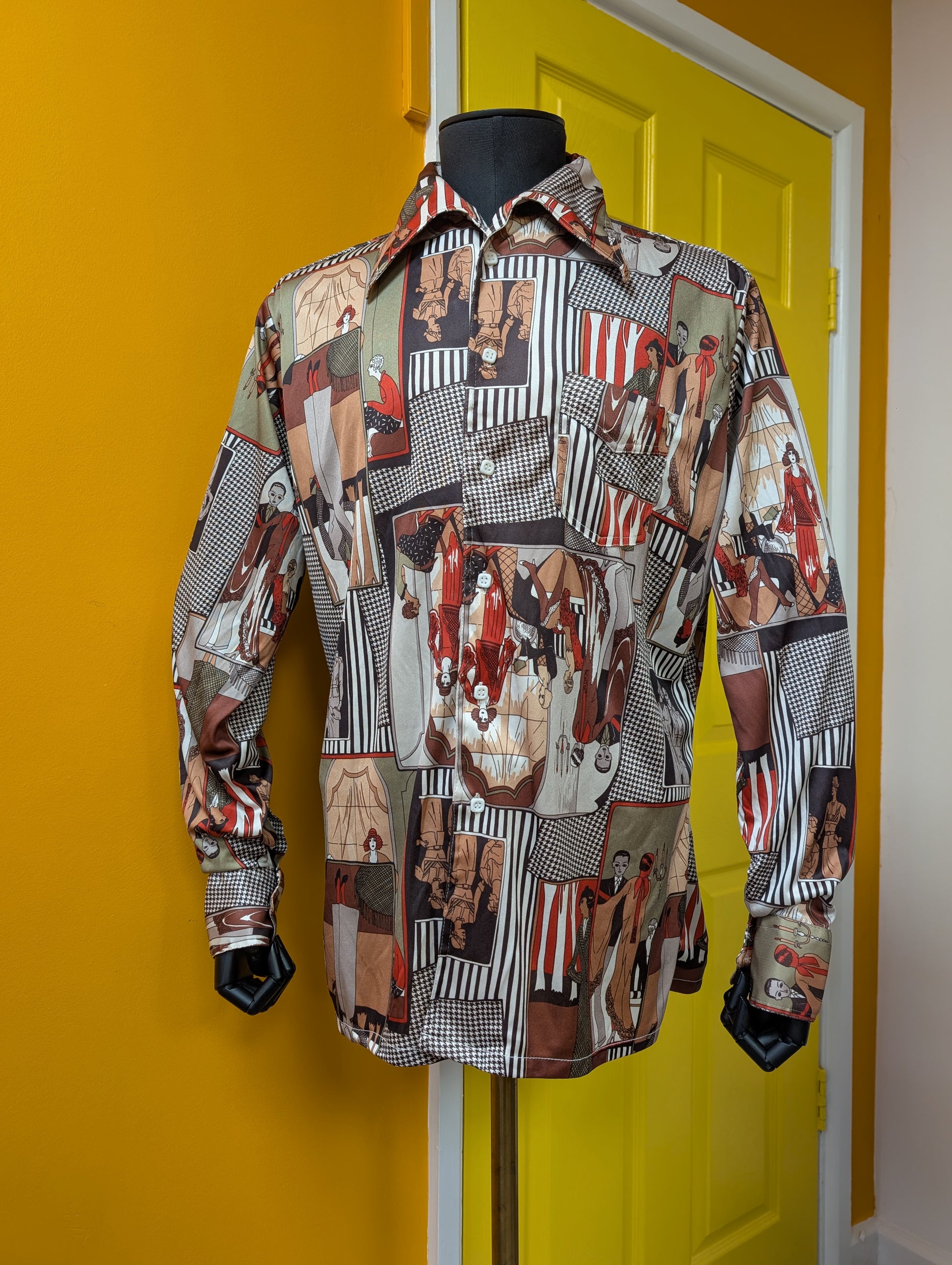 Fabulous 1970s shirt with a beautiful Art Deco themed print