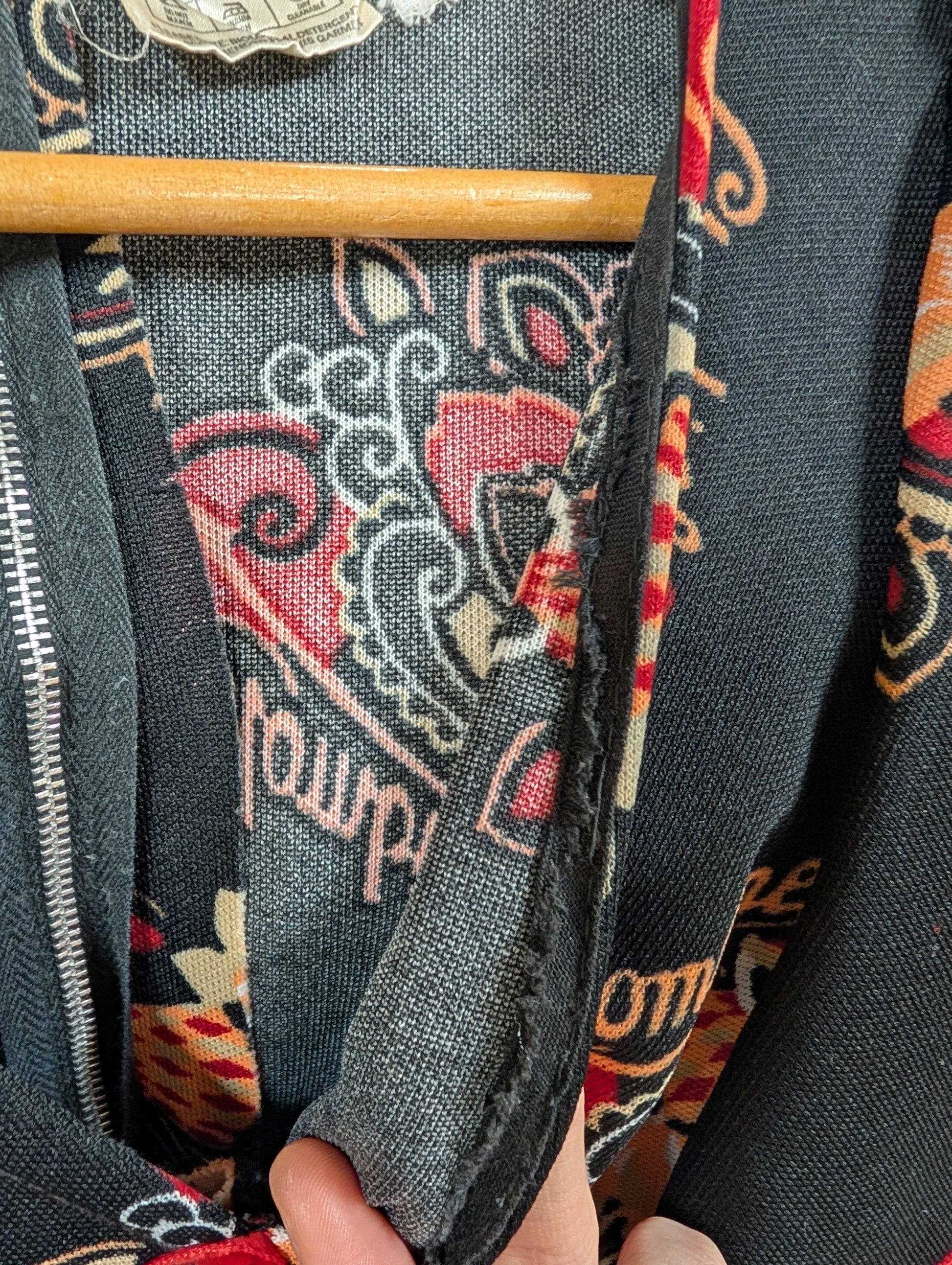 - Some parts of the stitching around the neckline looks to have been repaired in a slightly different shade thread