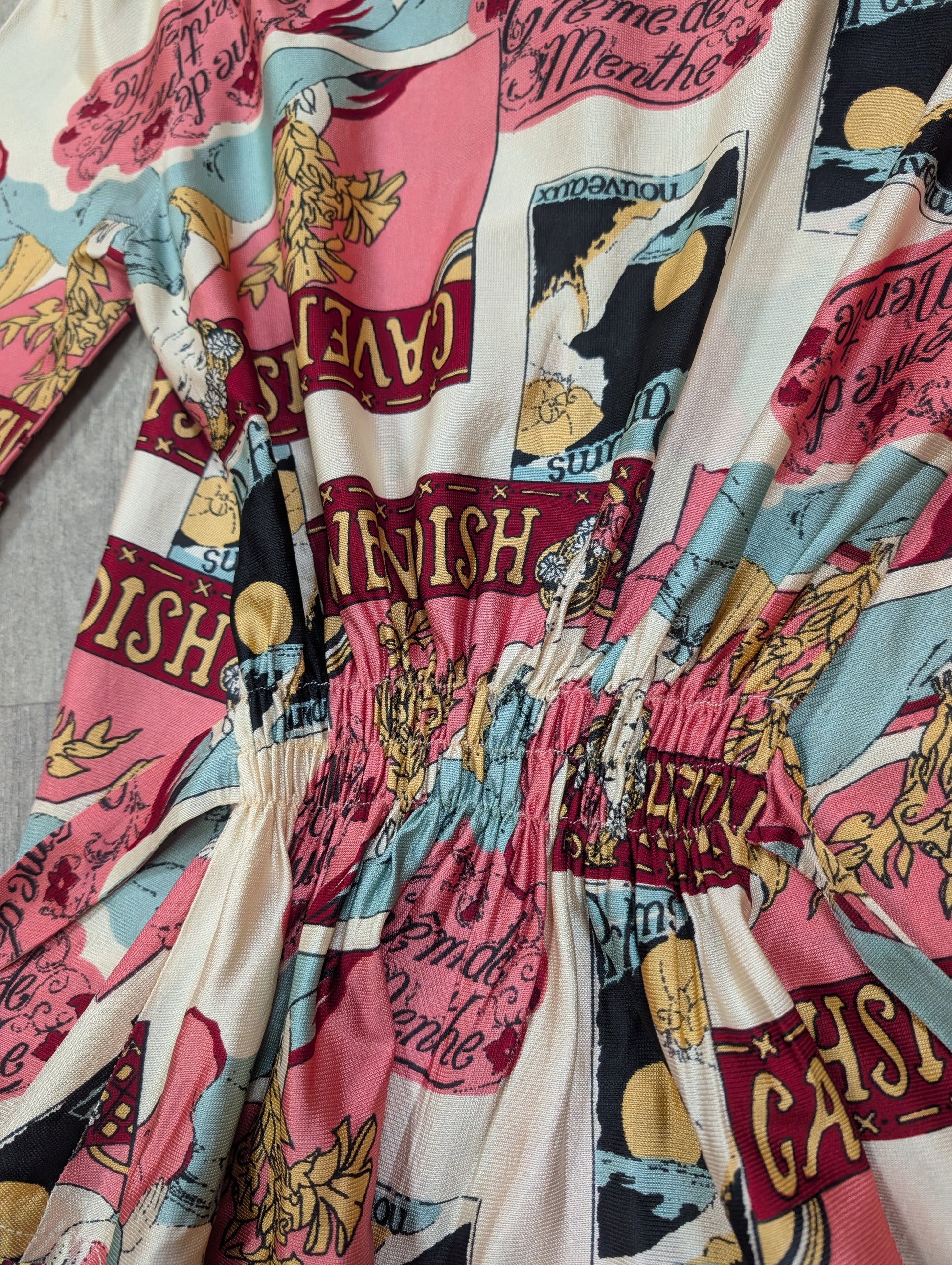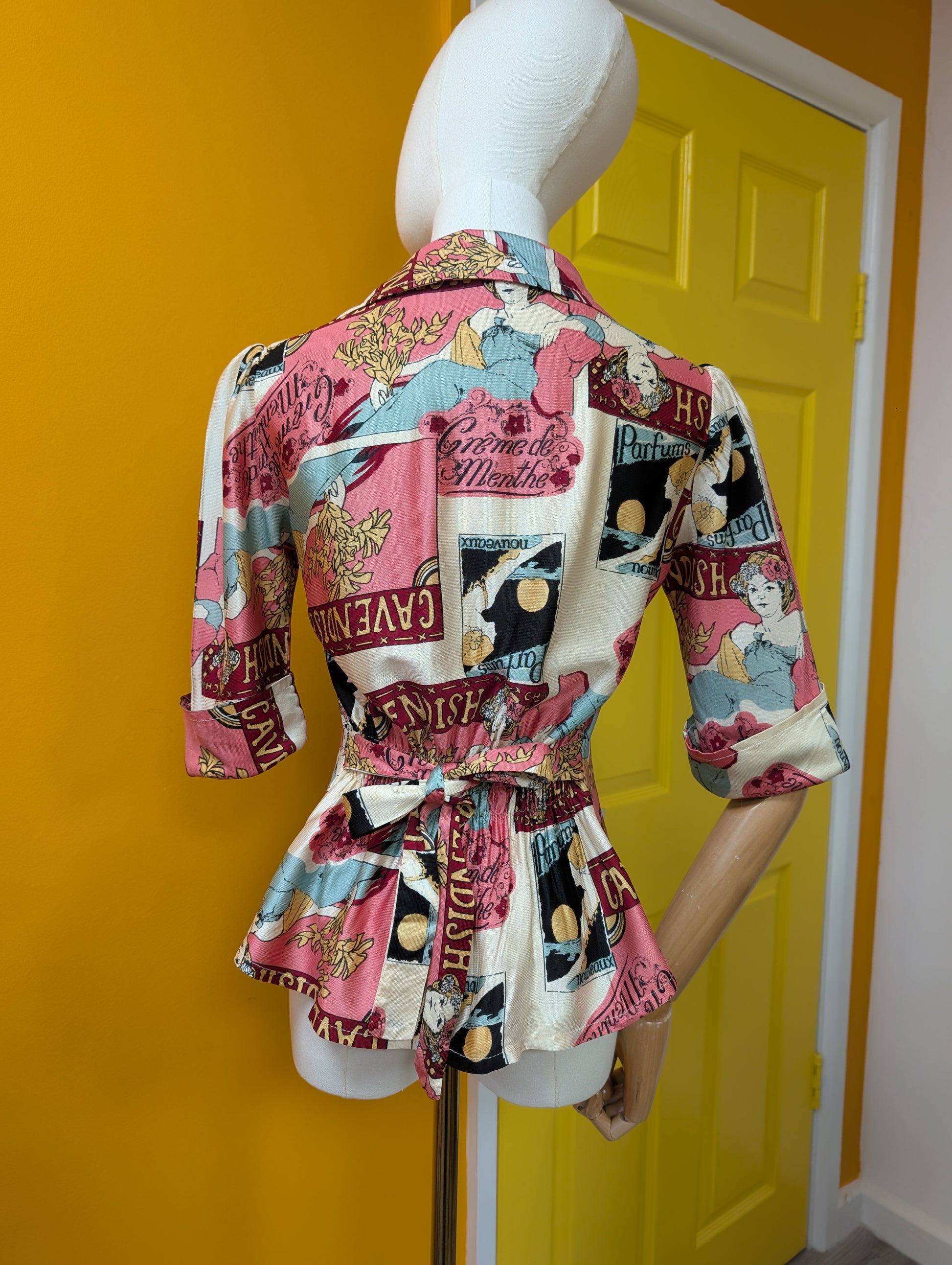 1970s Dorothy Perkins novelty Art Nouveau print tie waist top - XS/S