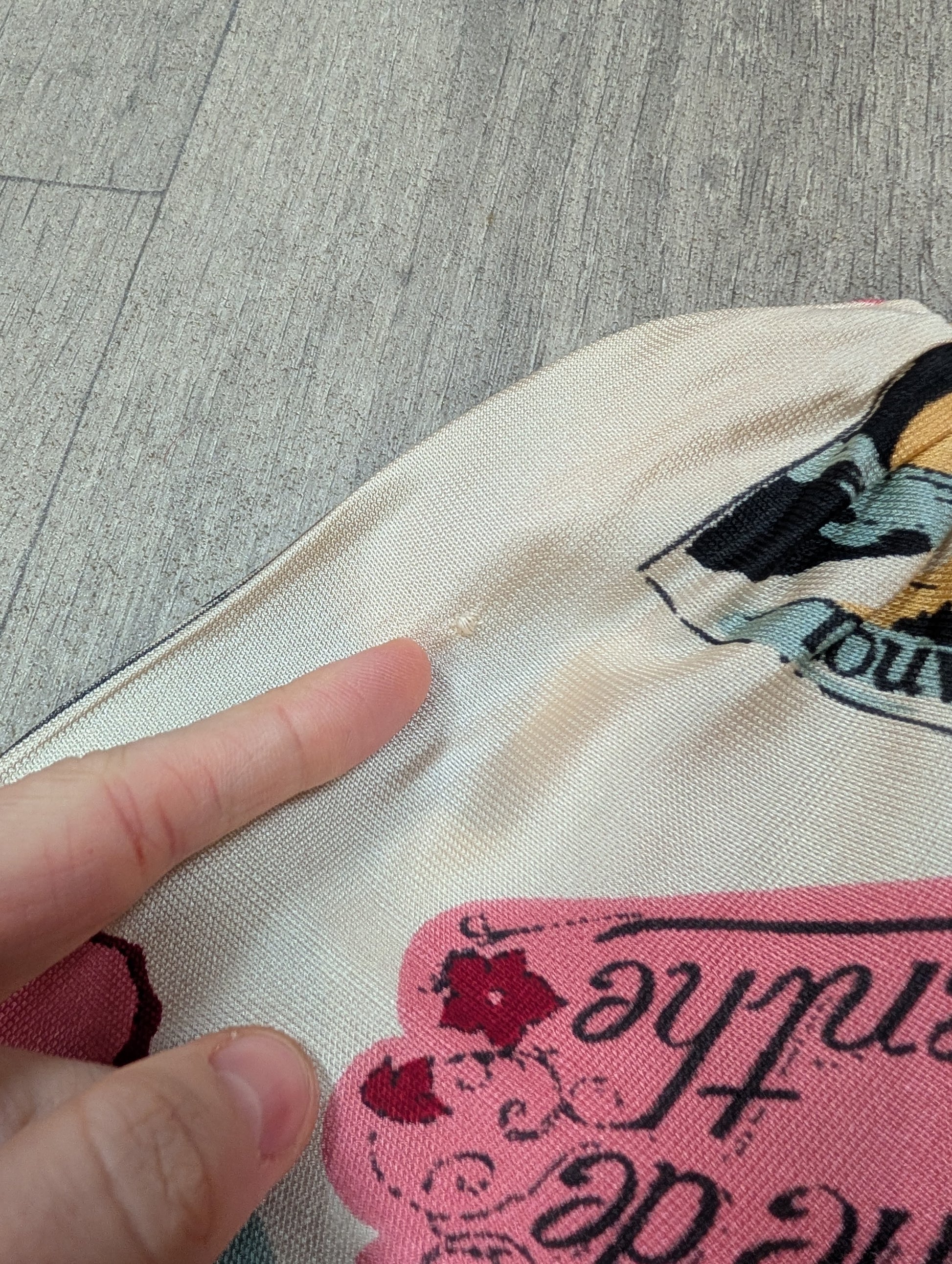 - Faint yellow to a small part of the fabric where the elastic is sewn on the back