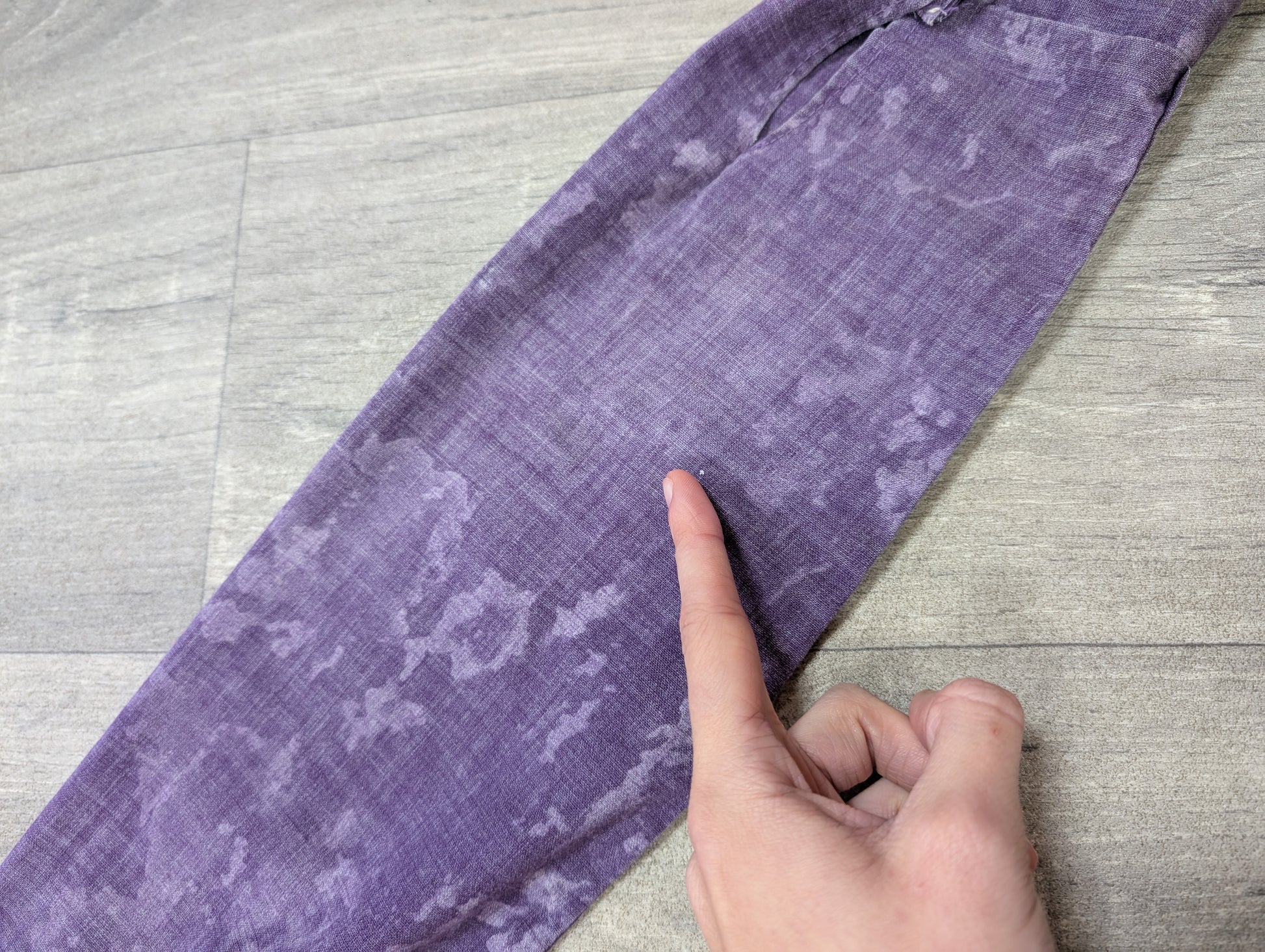 - Very faint wear/fade to the elbows