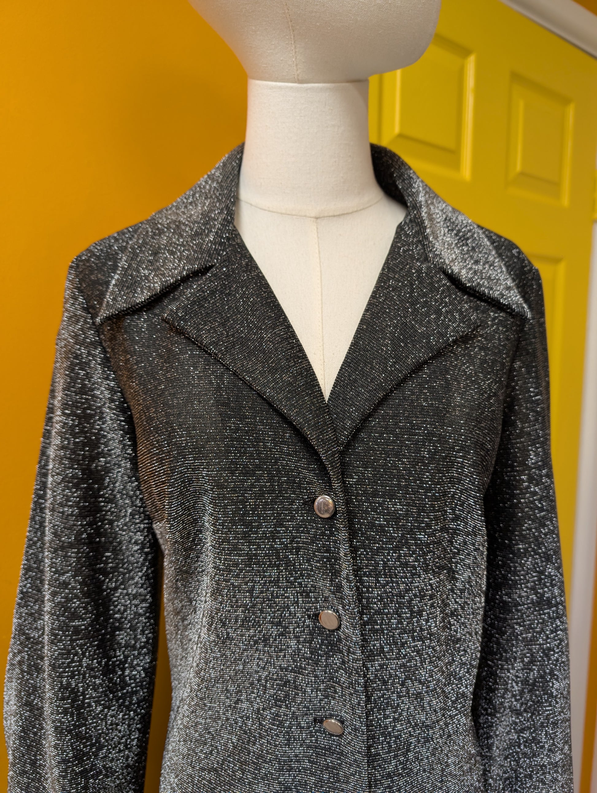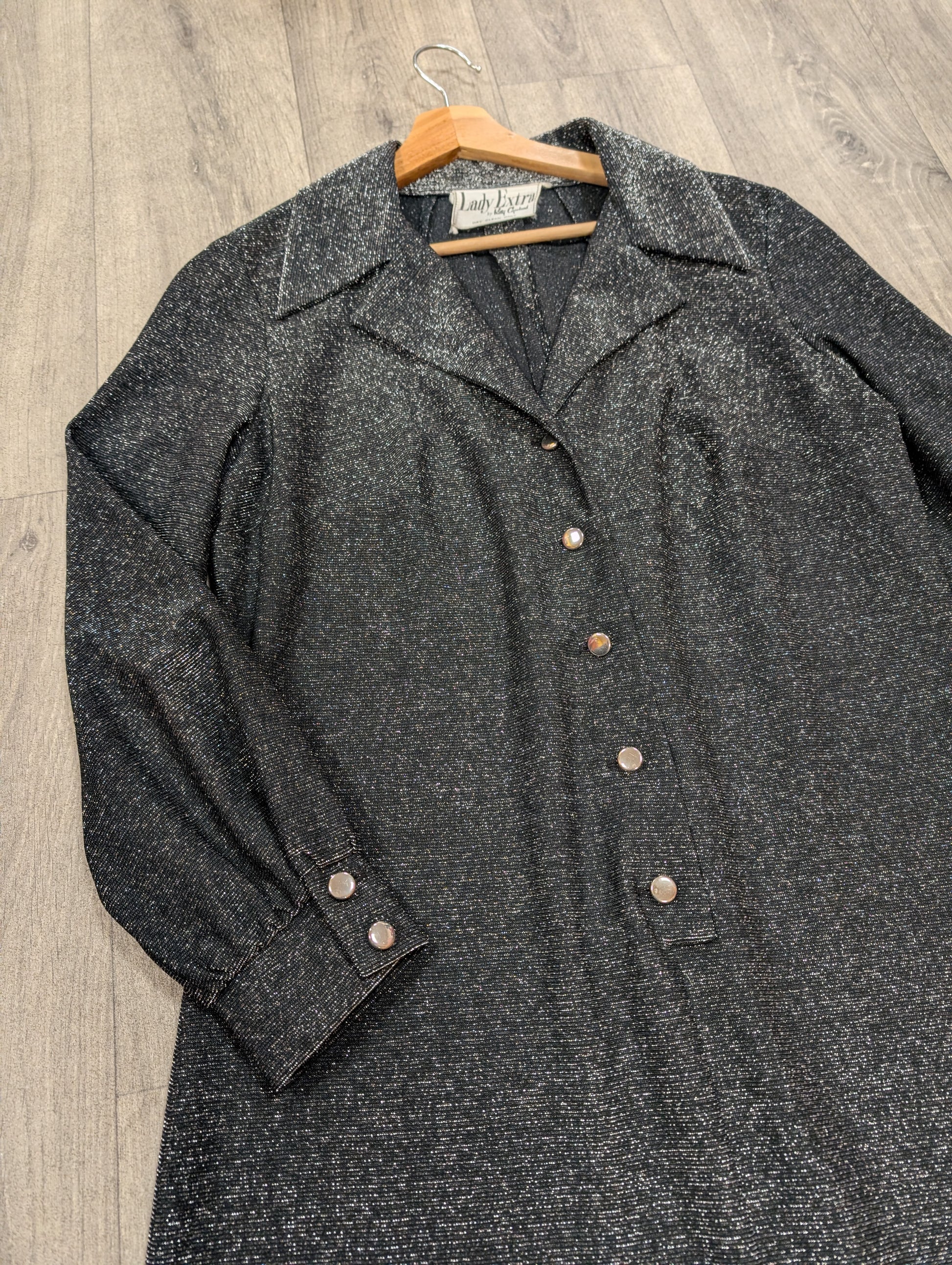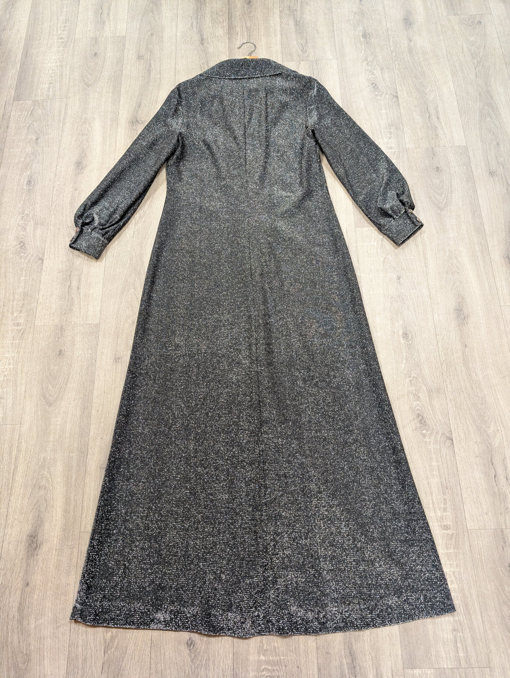 1970s Lady Extra by Kitty Copeland silver lurex maxi dress - L/16