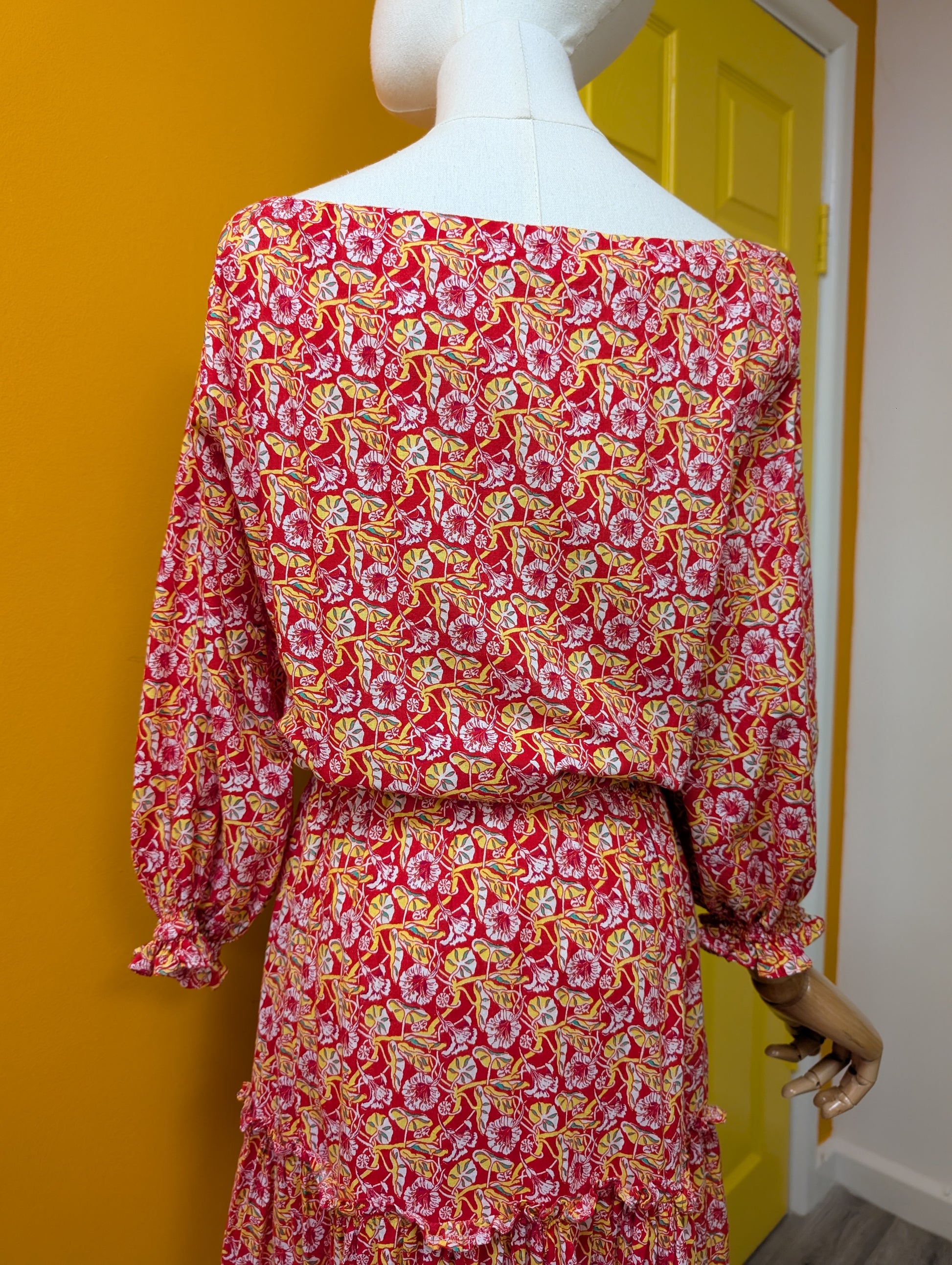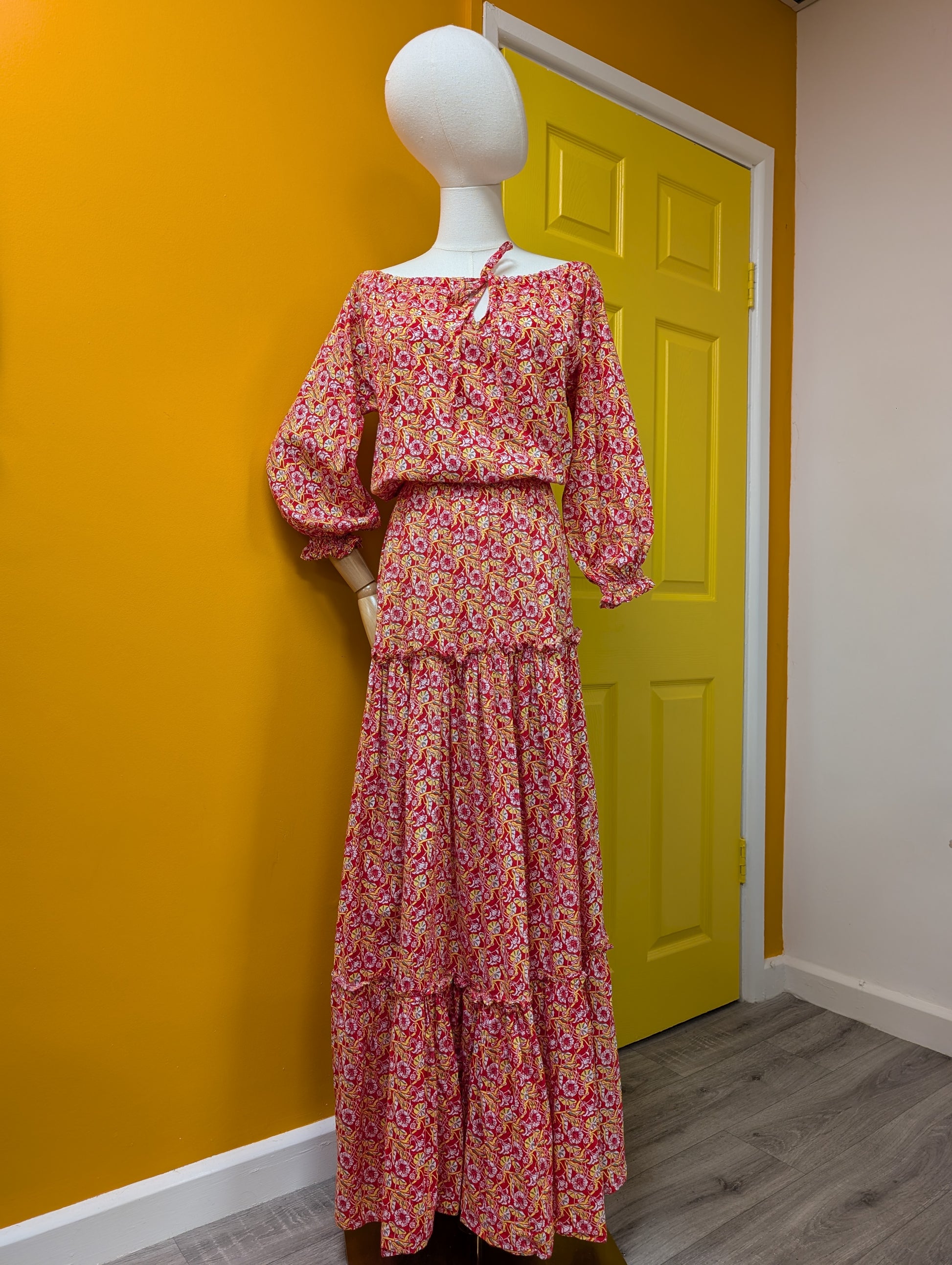 1970s Laura Ashley made in Wales red tiered maxi dress - S