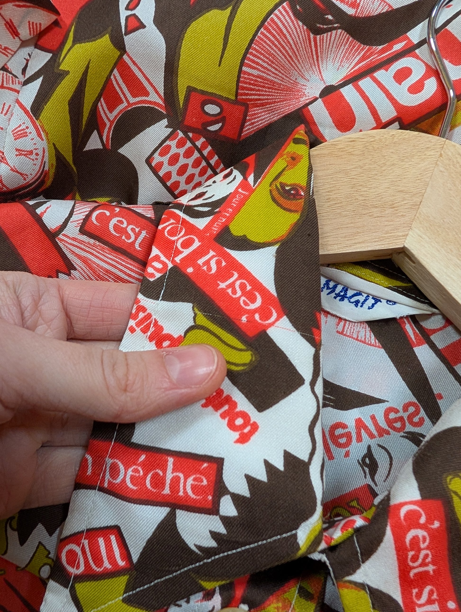 - There is a patch repair on one sleeve, a small repair on the upper back and some stitching on the collar edges