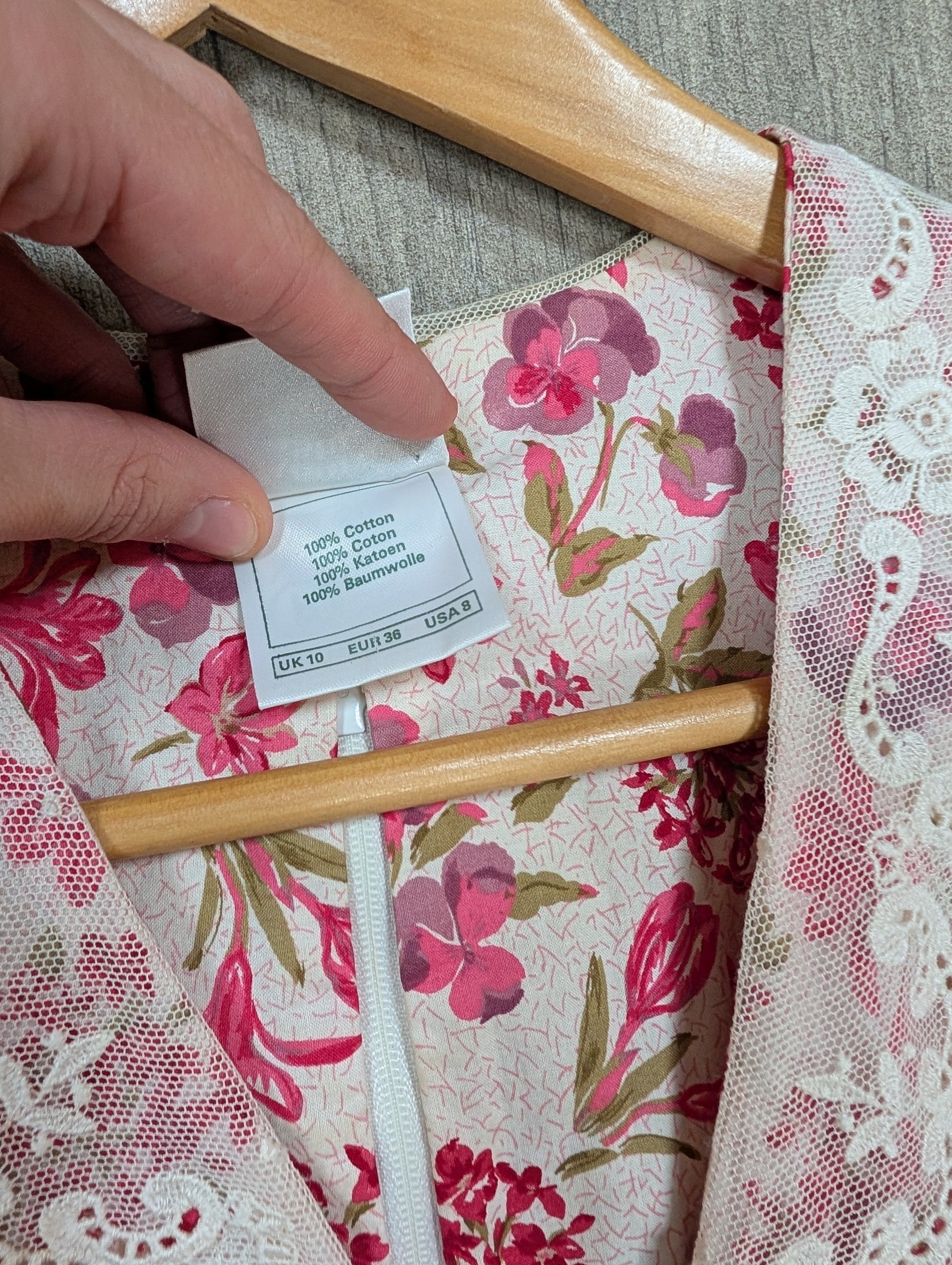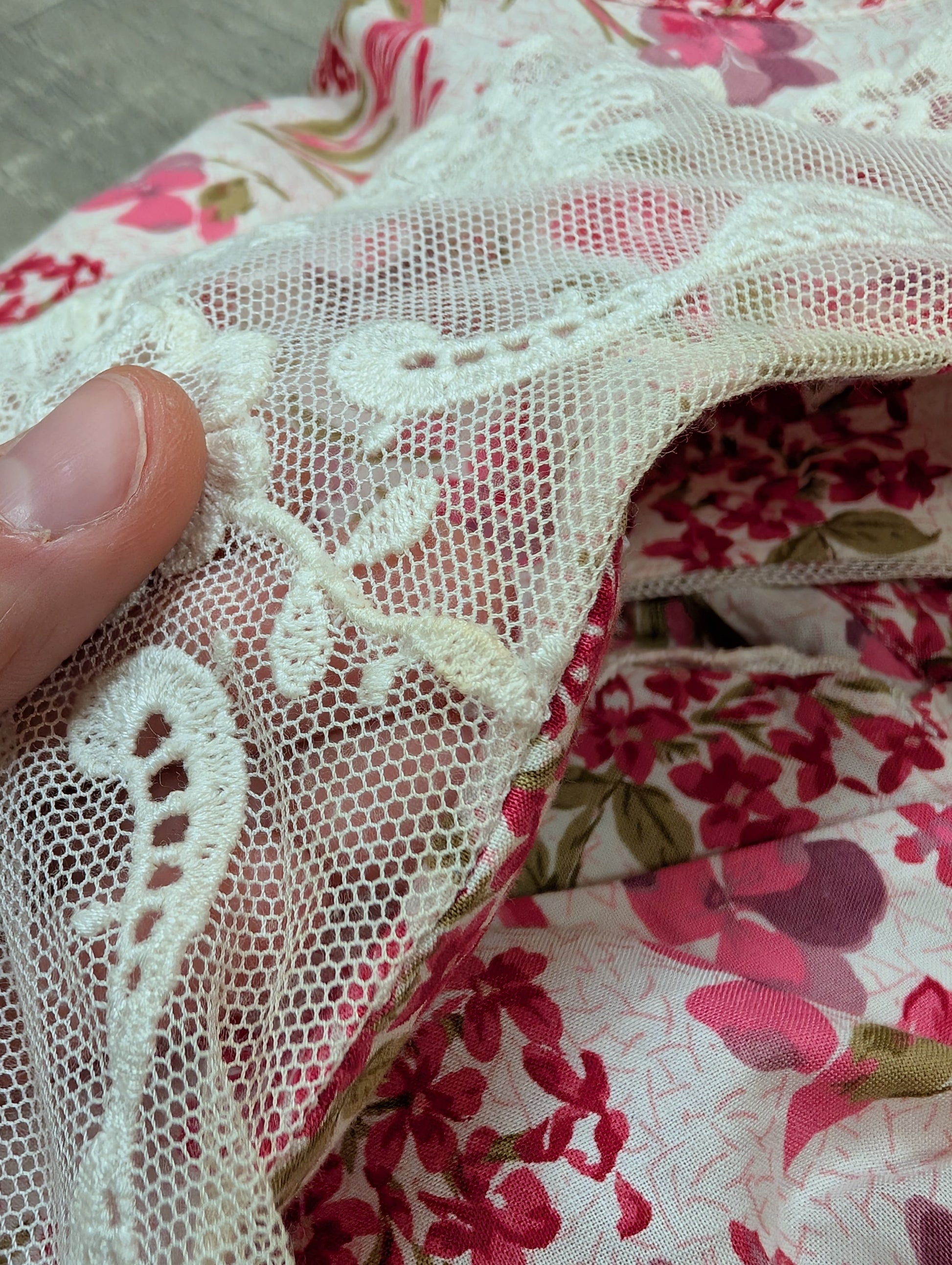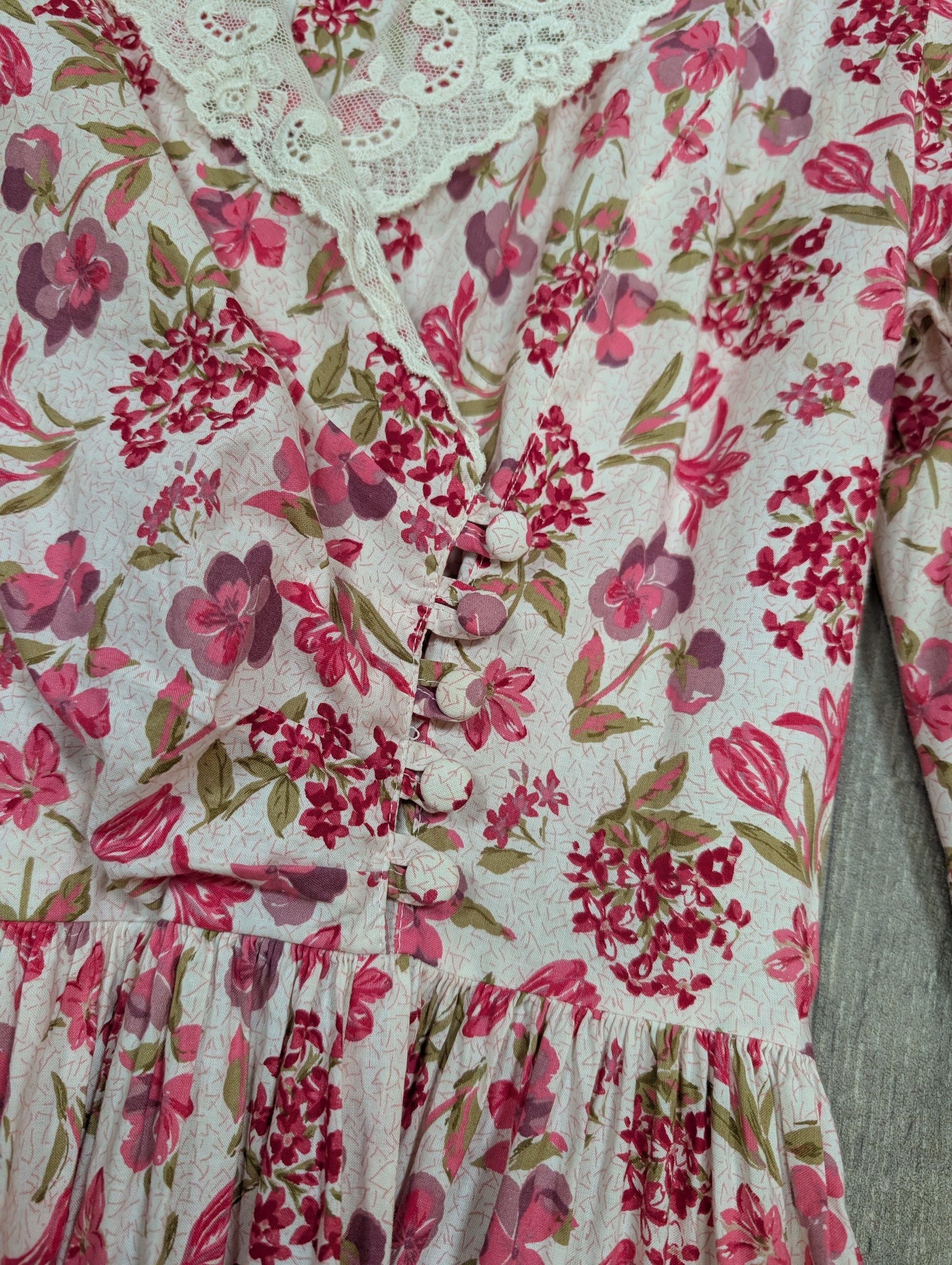 1980s Laura Ashley pink floral lace collar dress