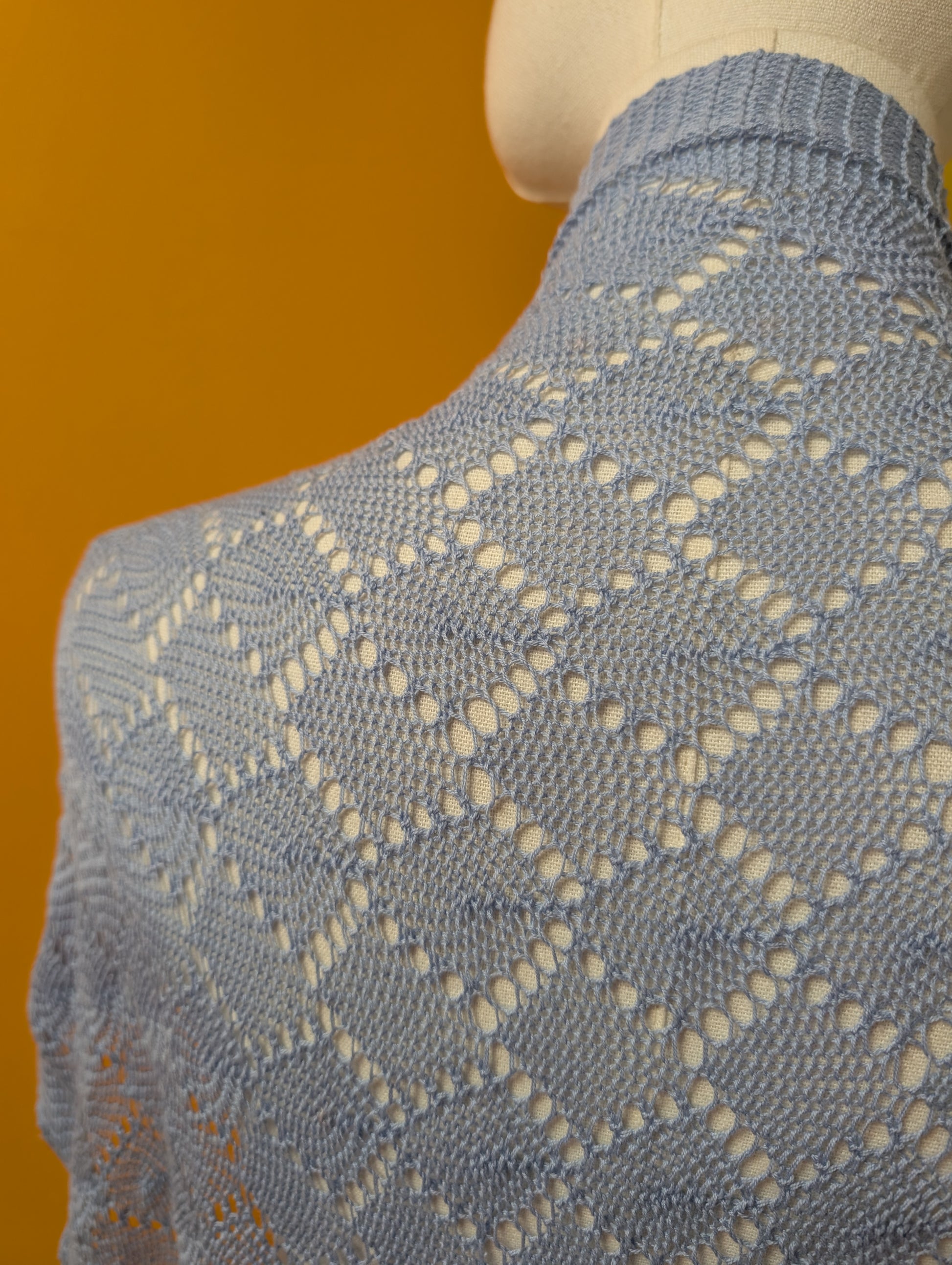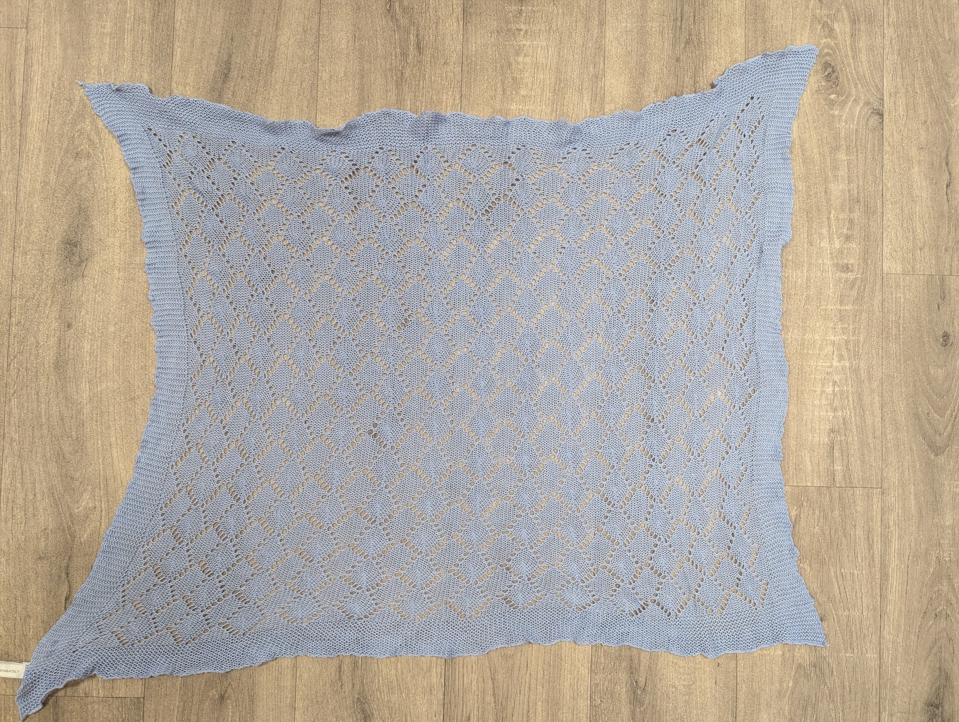 Measures approx 24" x 28" unstretched but has lots of stretch and movement due to the way it is knitted