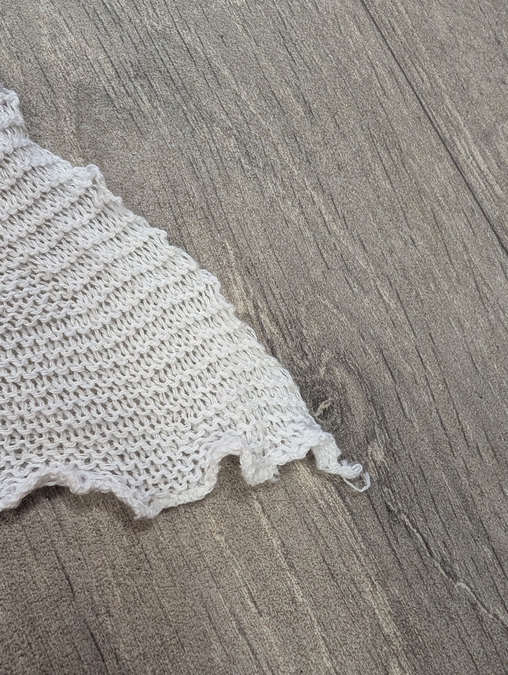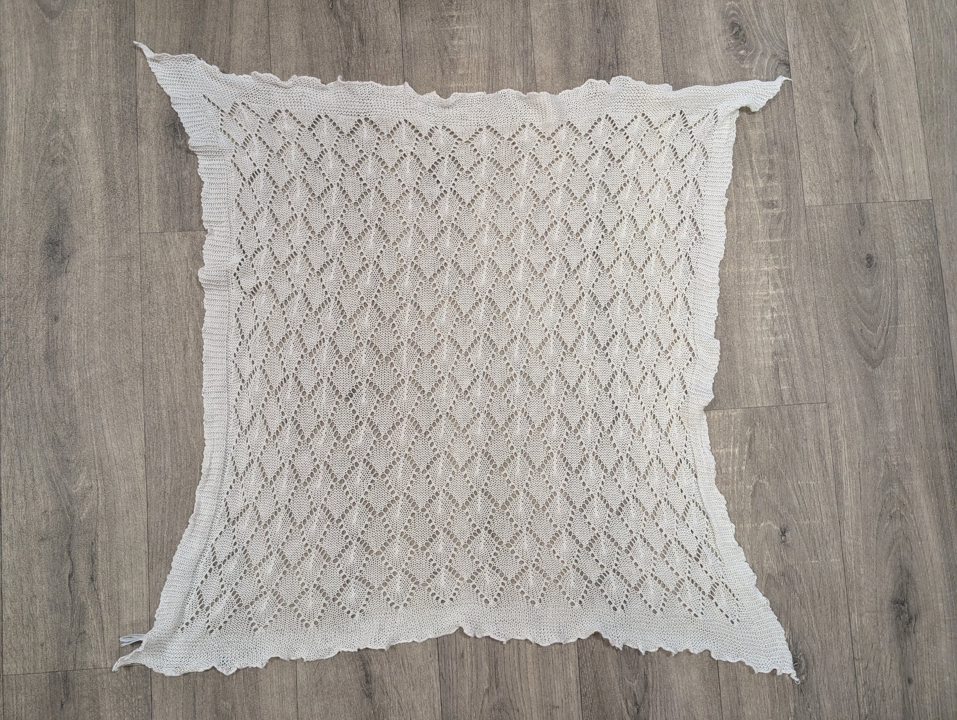 Measures approx 24" x 26" unstretched but has lots of stretch and movement due to the way it is knitted