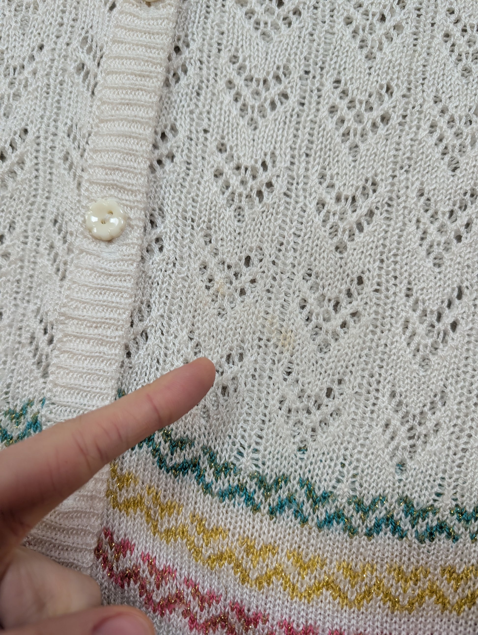 Good condition, a very very faint mark to one side of the cardigan near the bottom. As pictured
