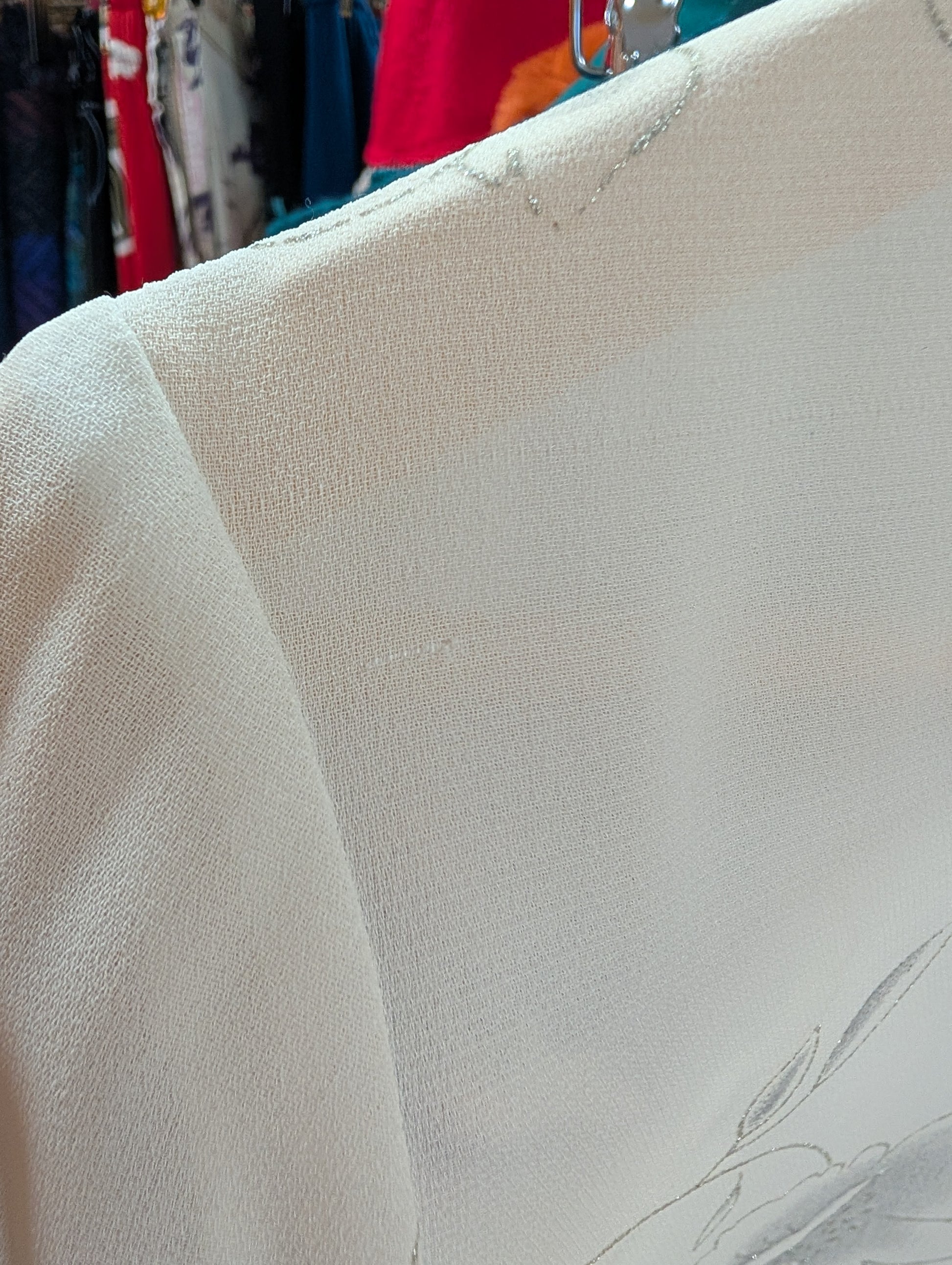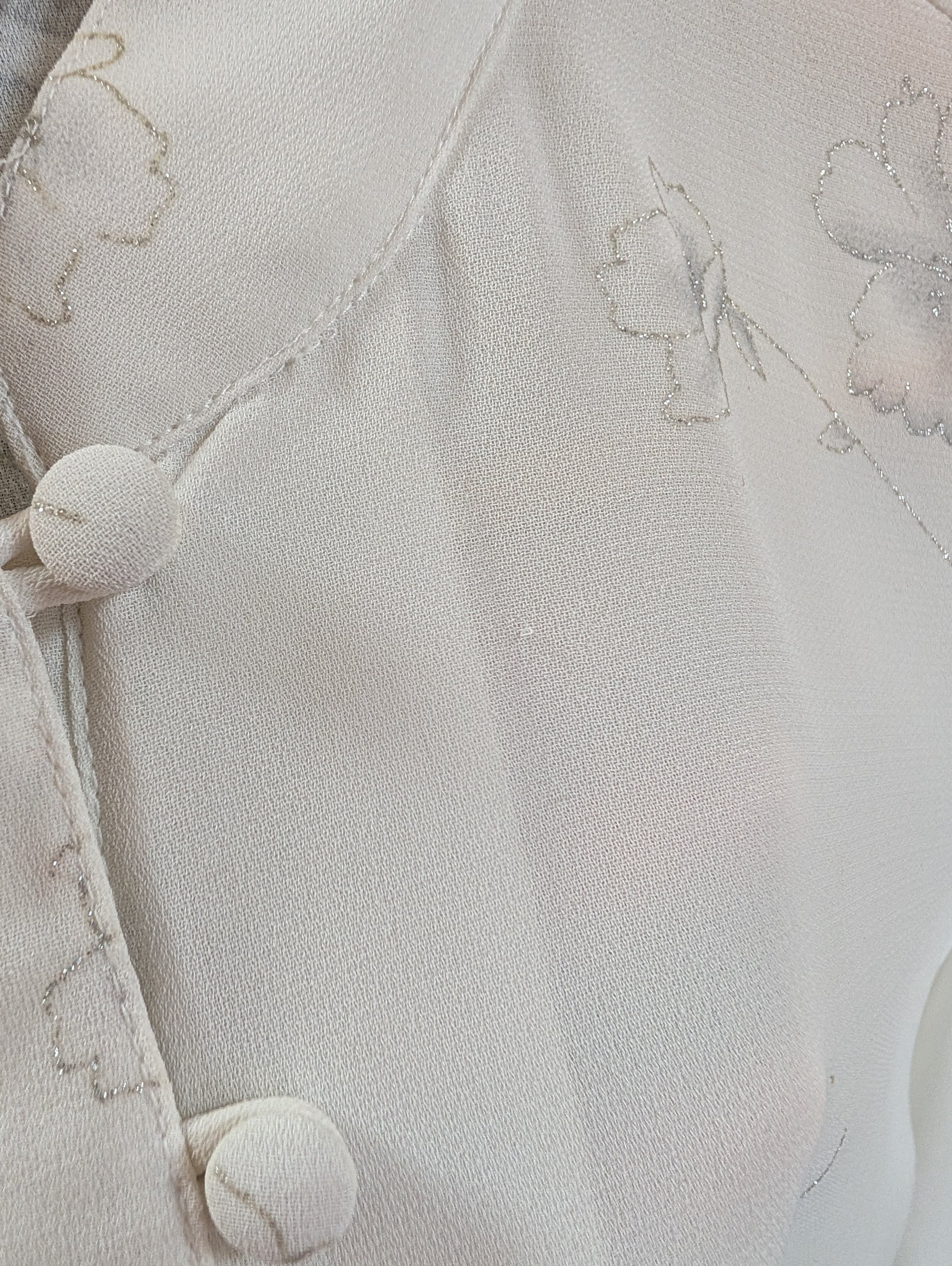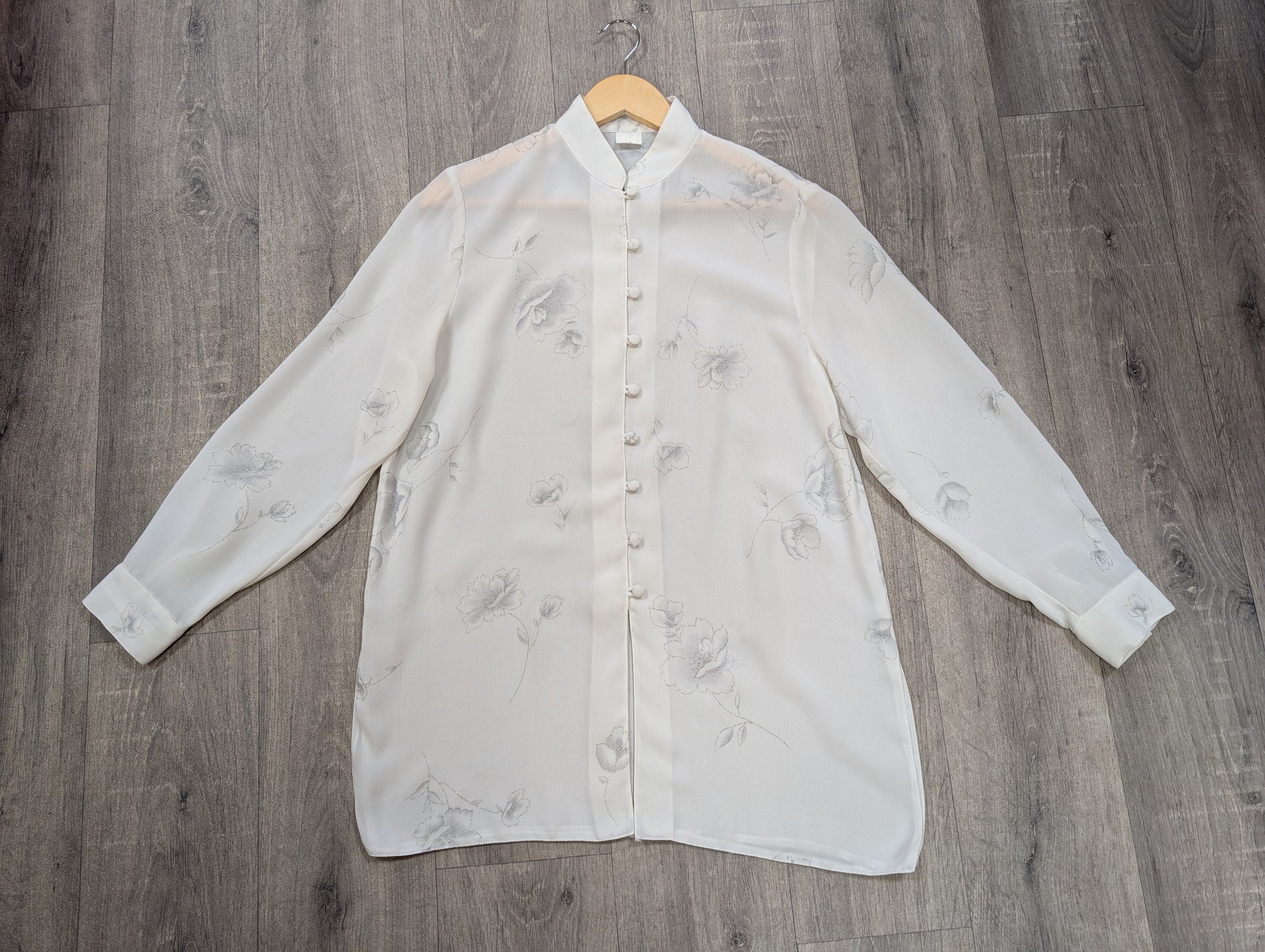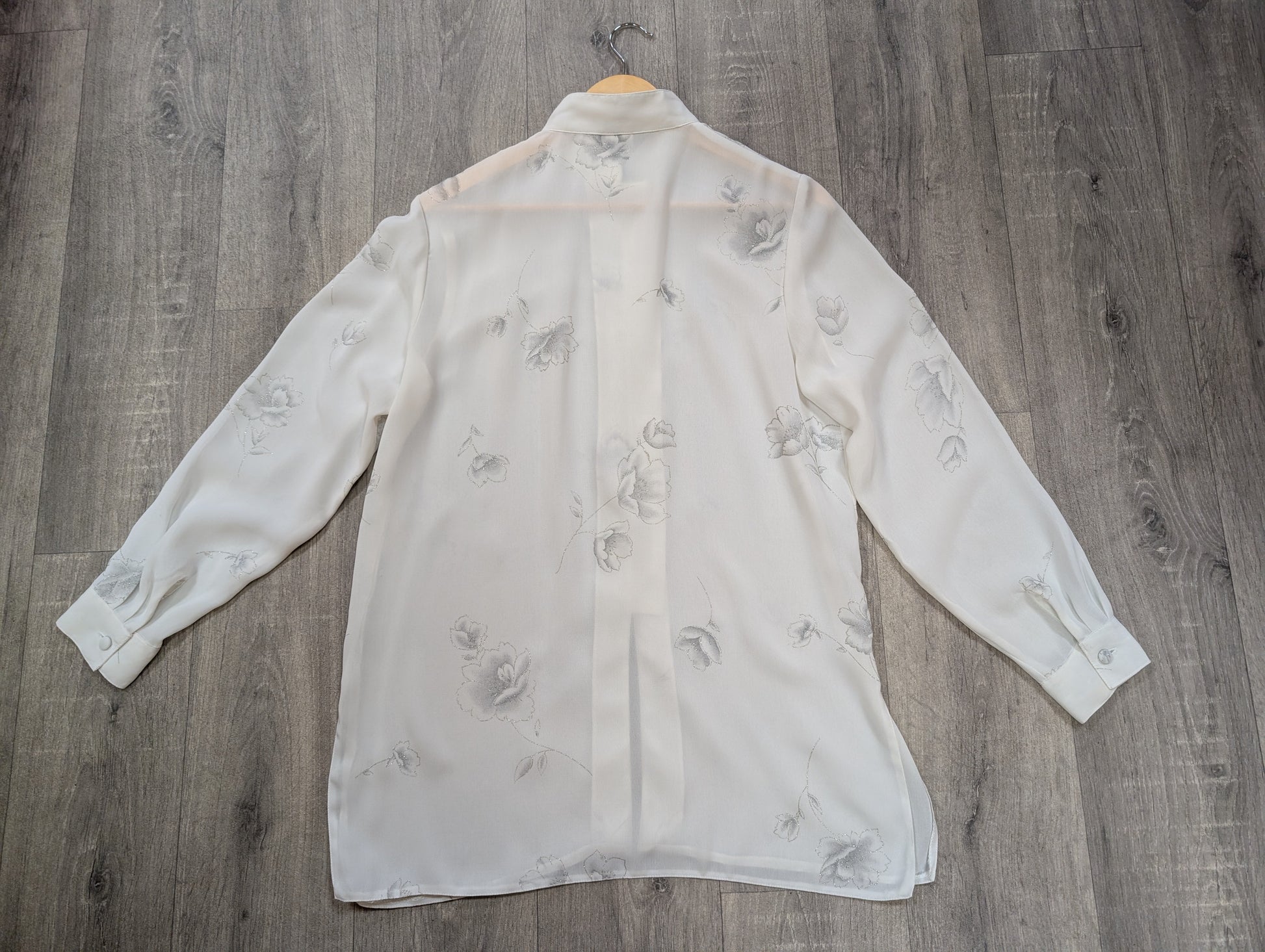 1980s white & silver floral shirt - M