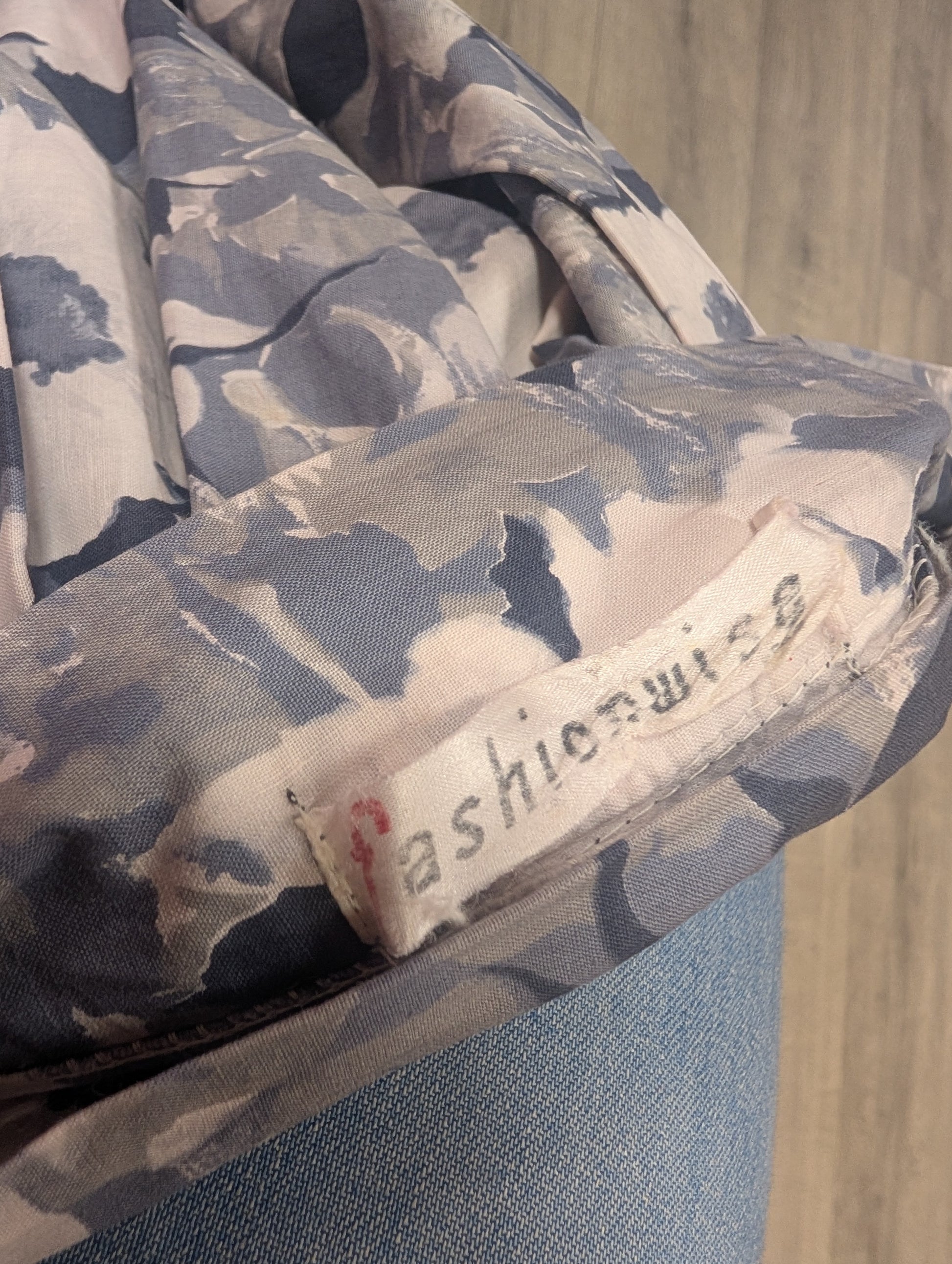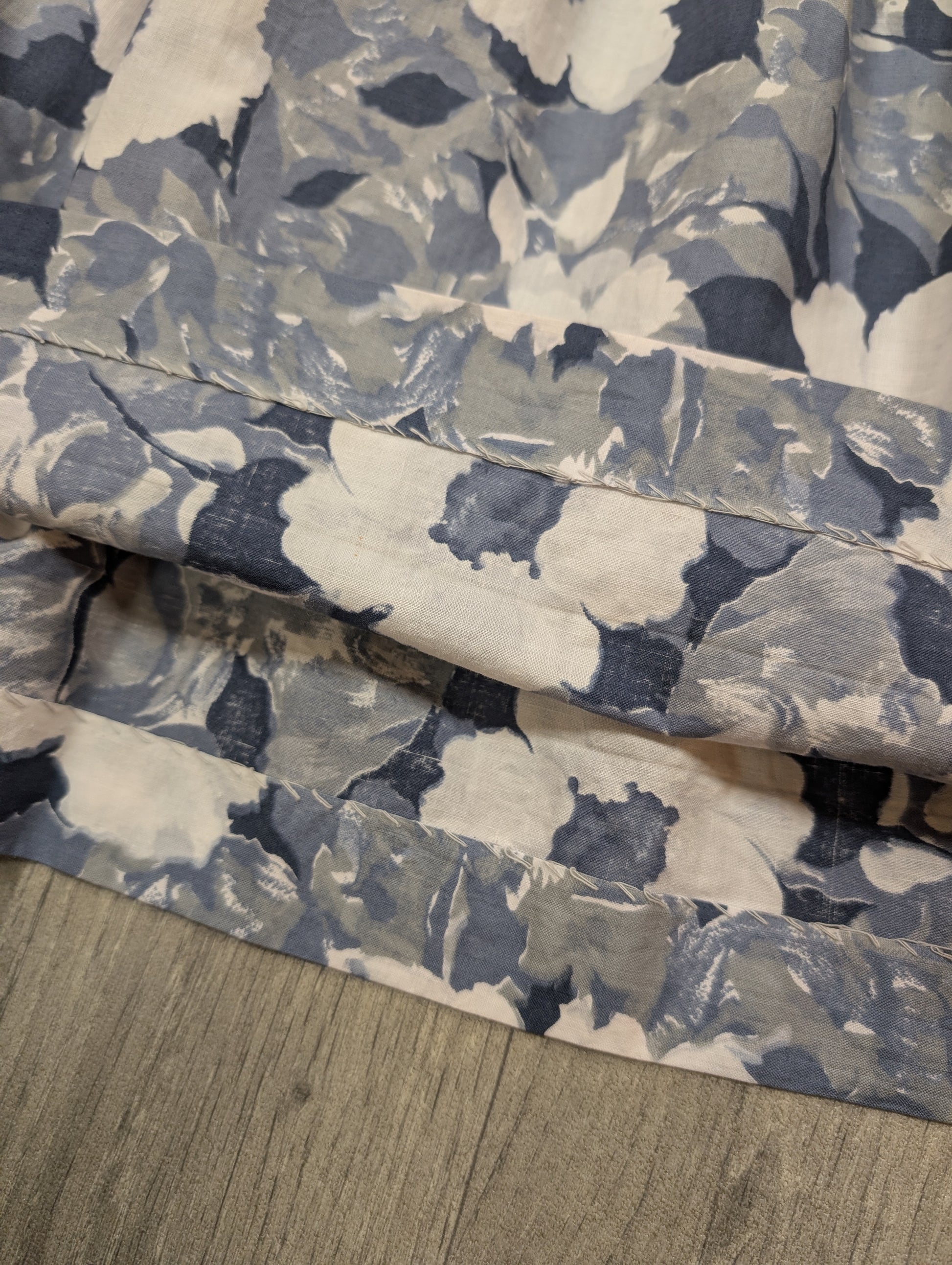 - A faint faded crease line at the hem where the skirt was previously shortened