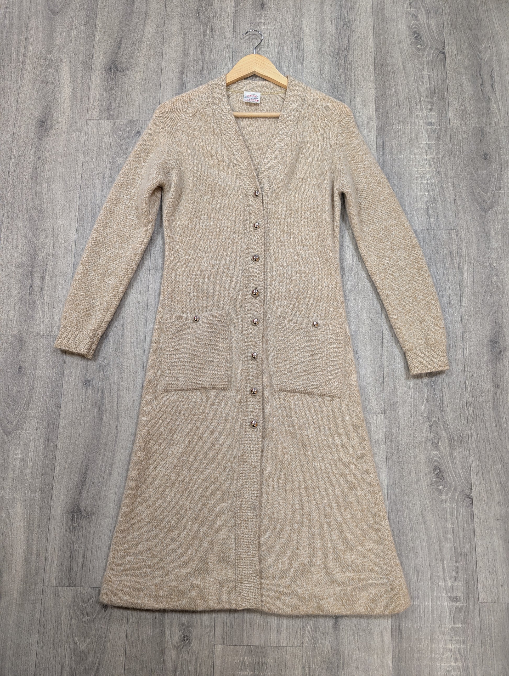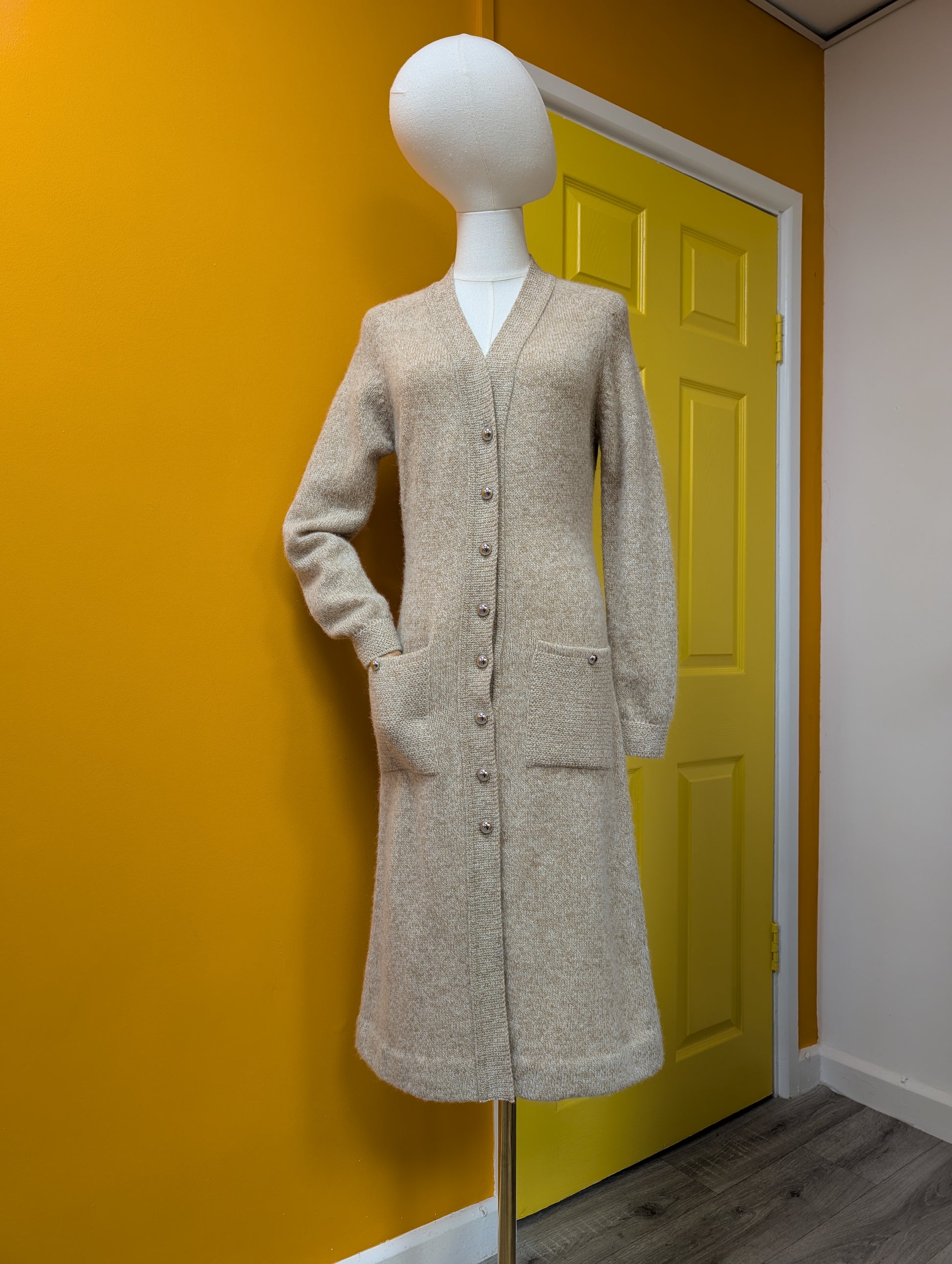 Gorgeous 60s/70s St Michael Shetland wool cardigan! Lovely silver buttons, patch pockets and a stylish belt detail at the back