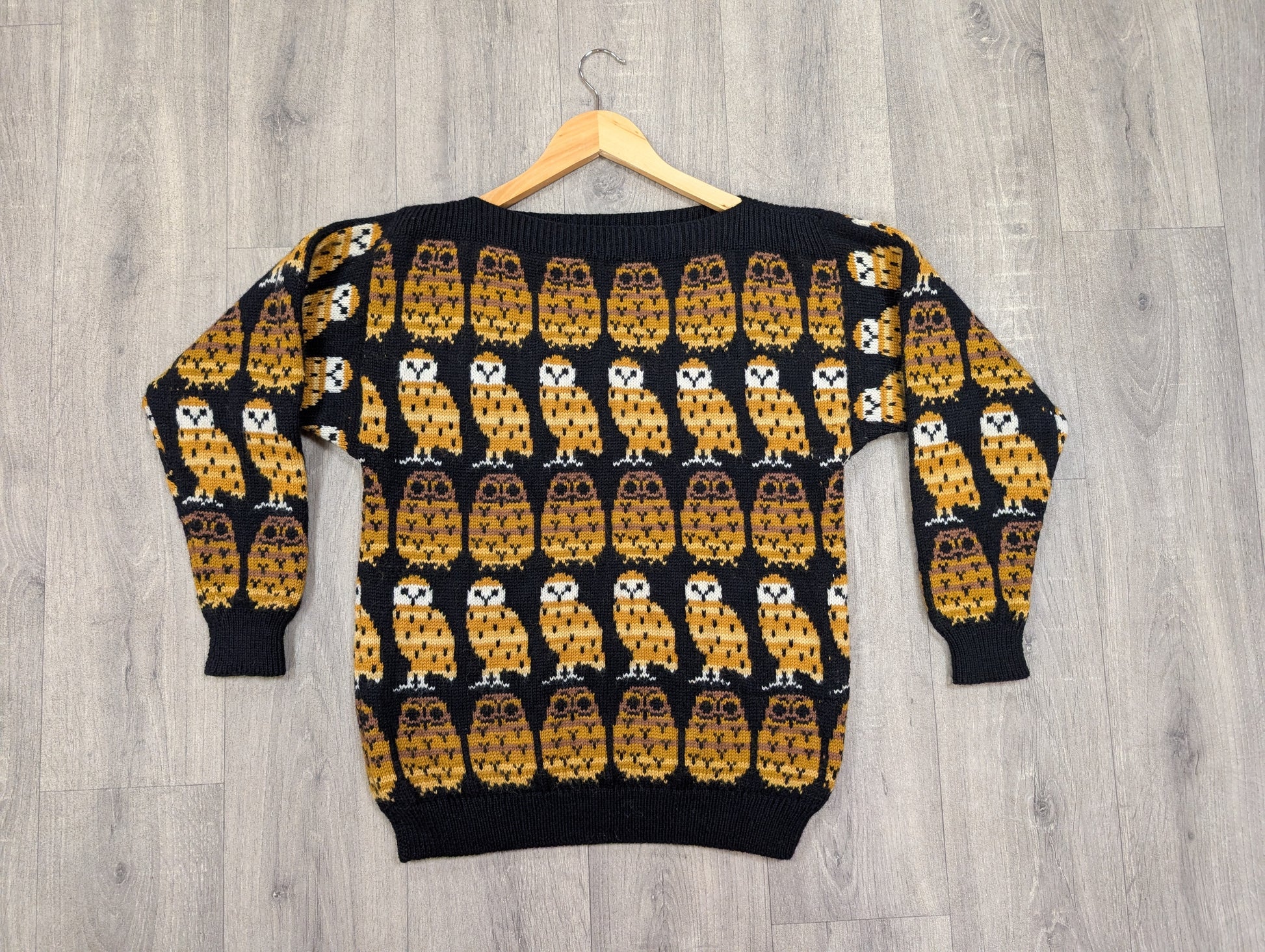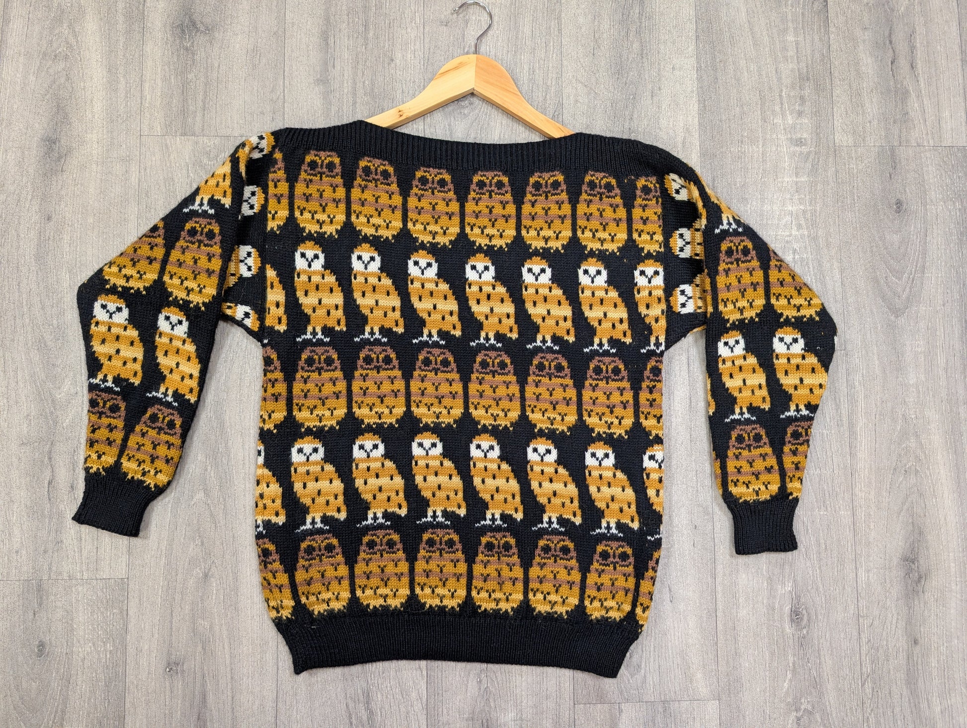 Black Sheep Designs novelty owl slash neck wool jumper - S
