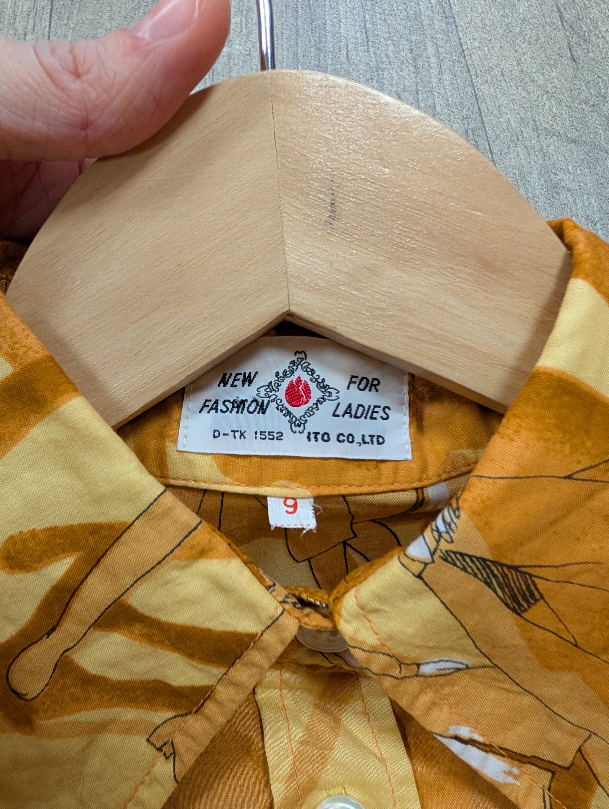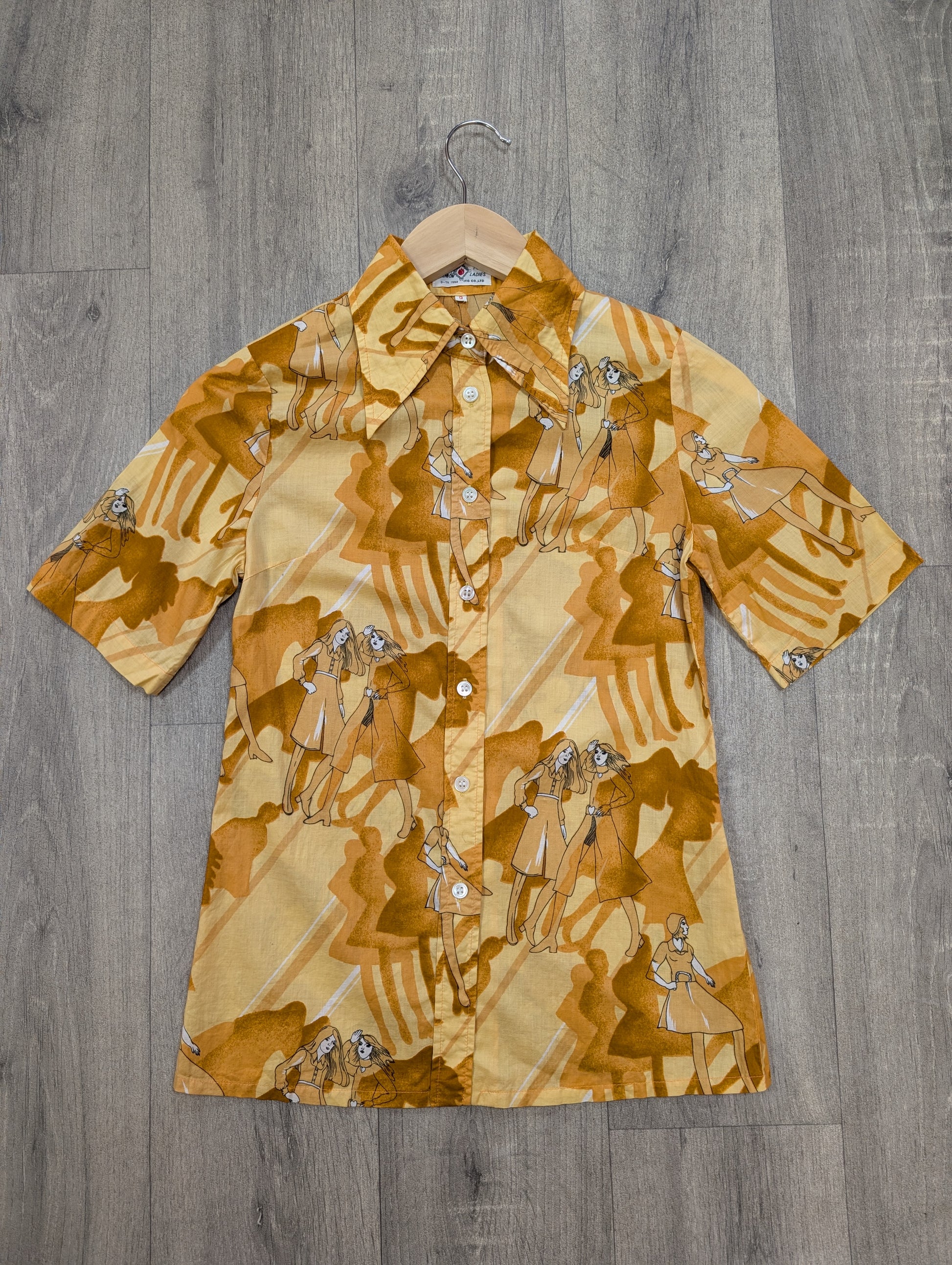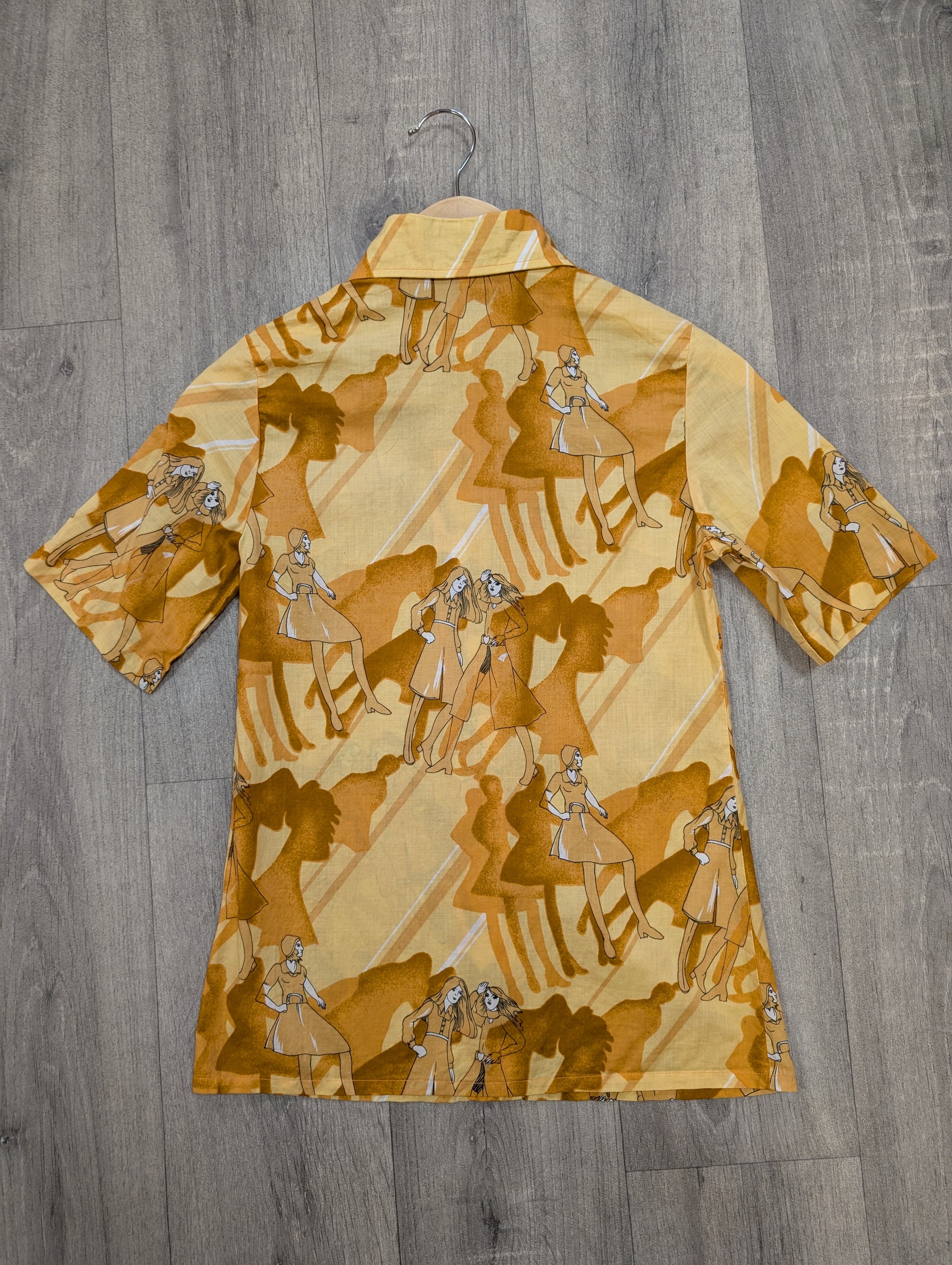 Truly epic 1970s dagger collar shirt with the most wonderful print!